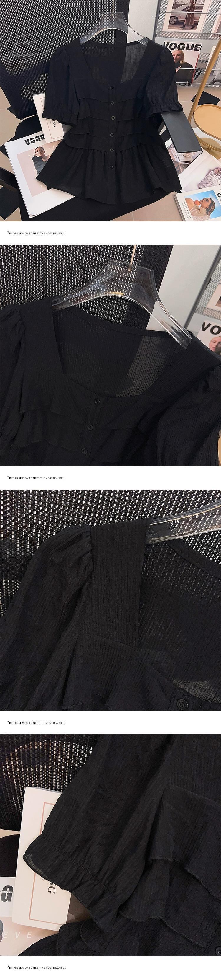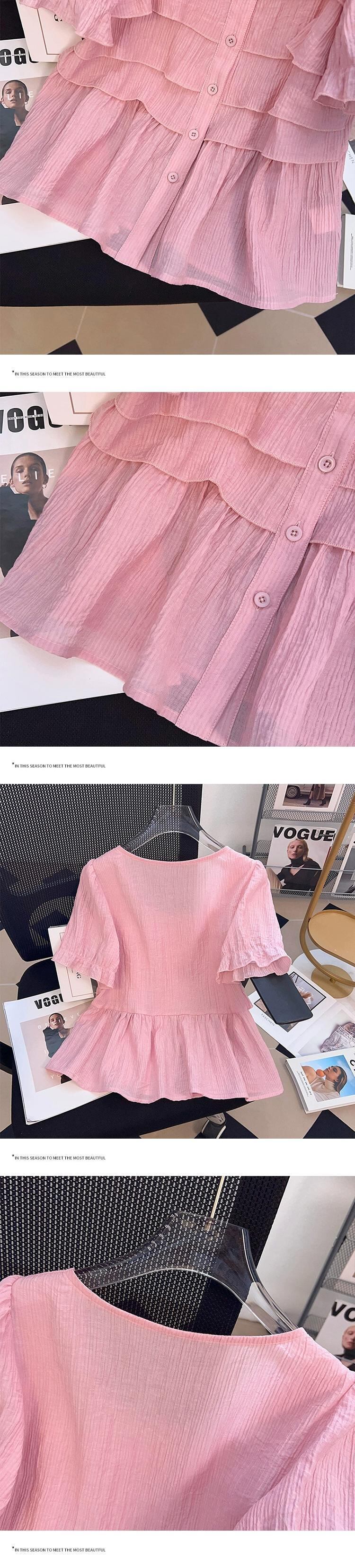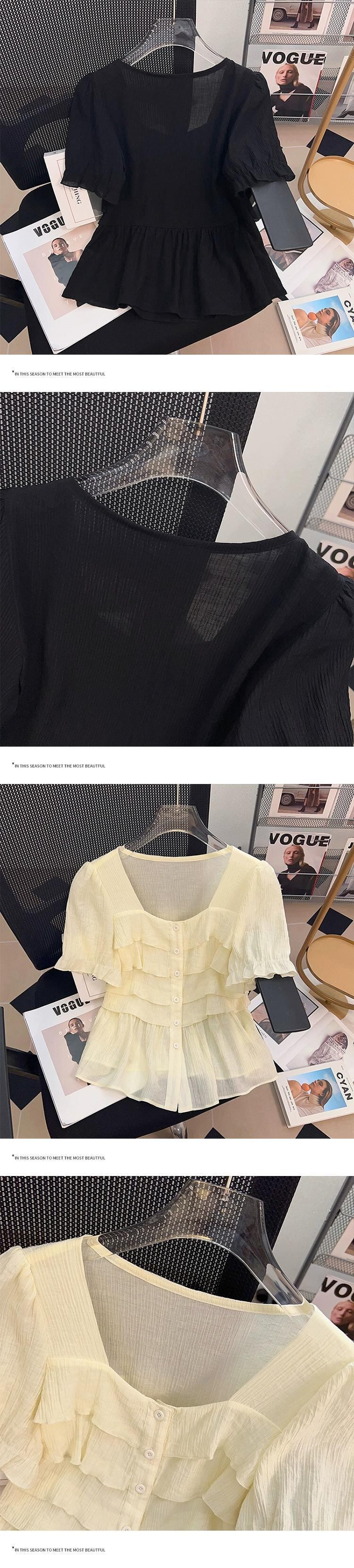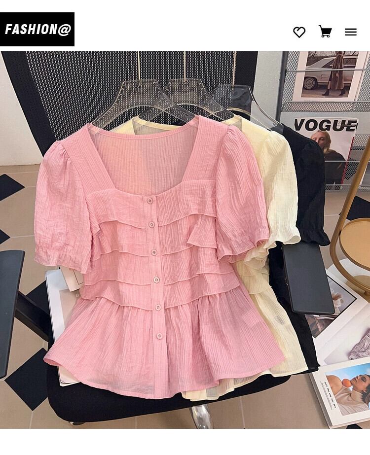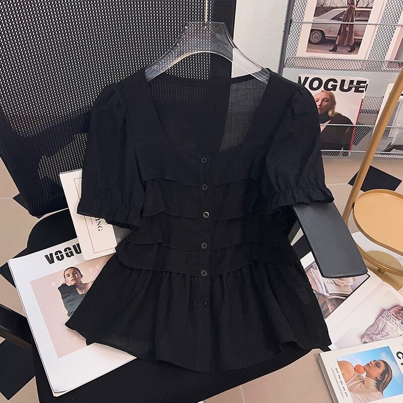 プラスサイズの婦人服 2023 流行の夏の新しいファットシスターファッションオールマッチ気質ジャケット年齢を軽減するフリルスクエアカラーシャツ 大きめサイズ サマー 夏物 スクウェア 8884192315569907