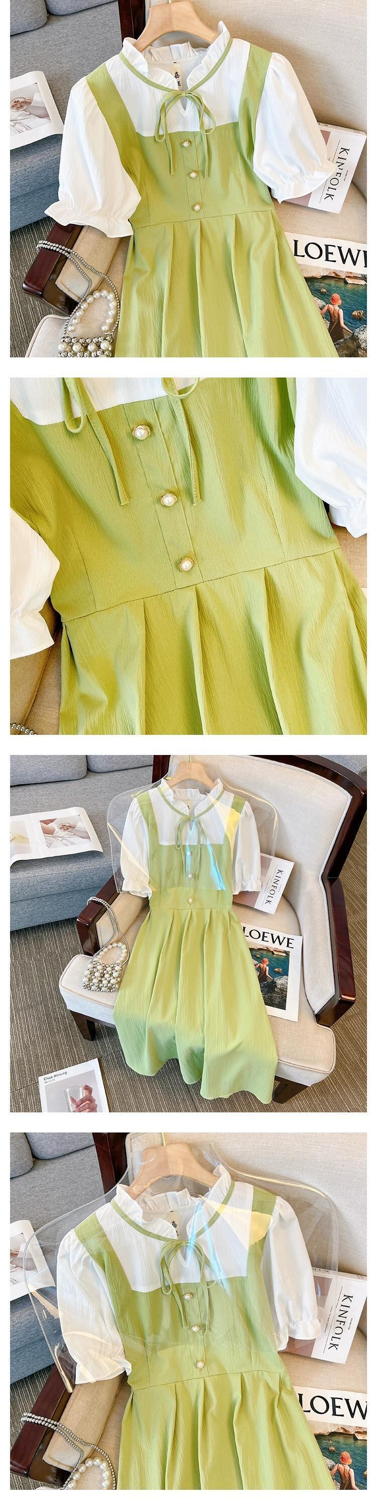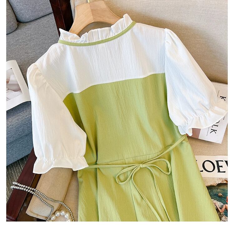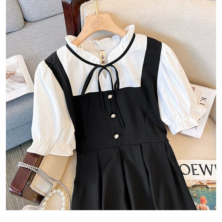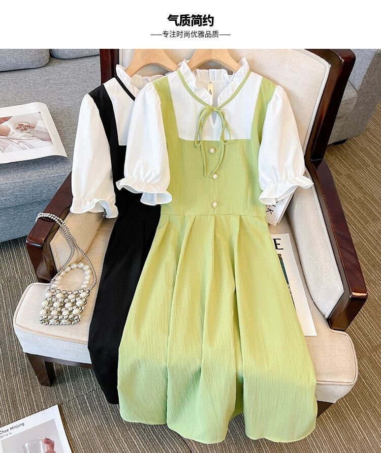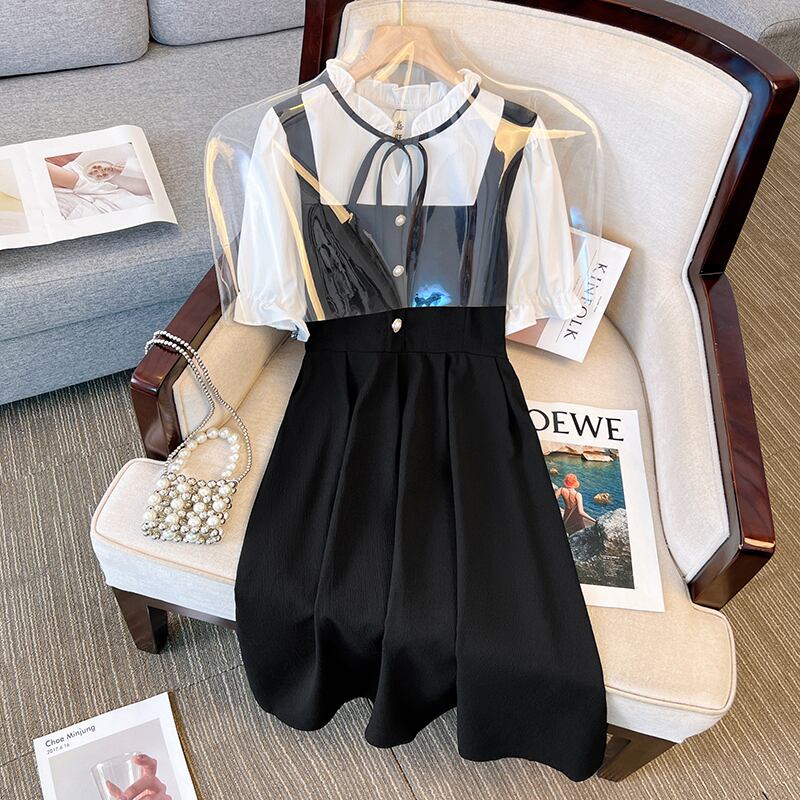 プラスサイズの婦人服 2023 夏服ファットシスターフレンチオールマッチ気質 A ラインスカート偽 2 つのシックなカジュアルドレス 大きめサイズ サマー 夏物 Aライン 8884169193816915