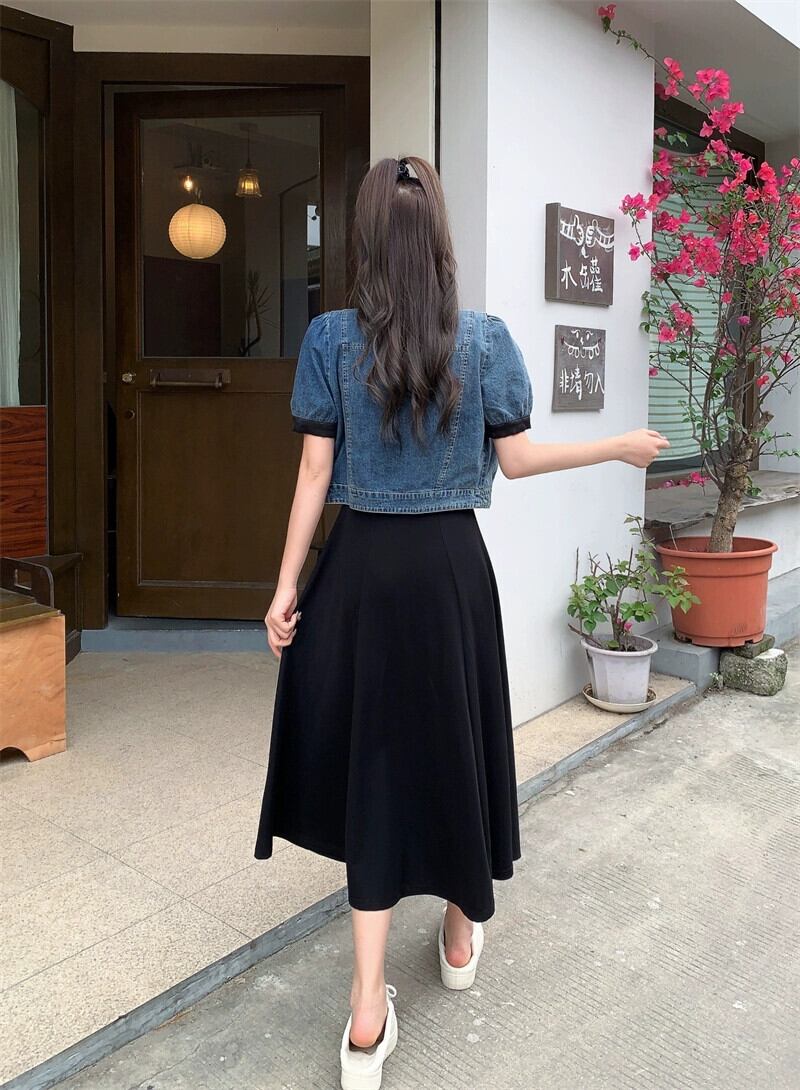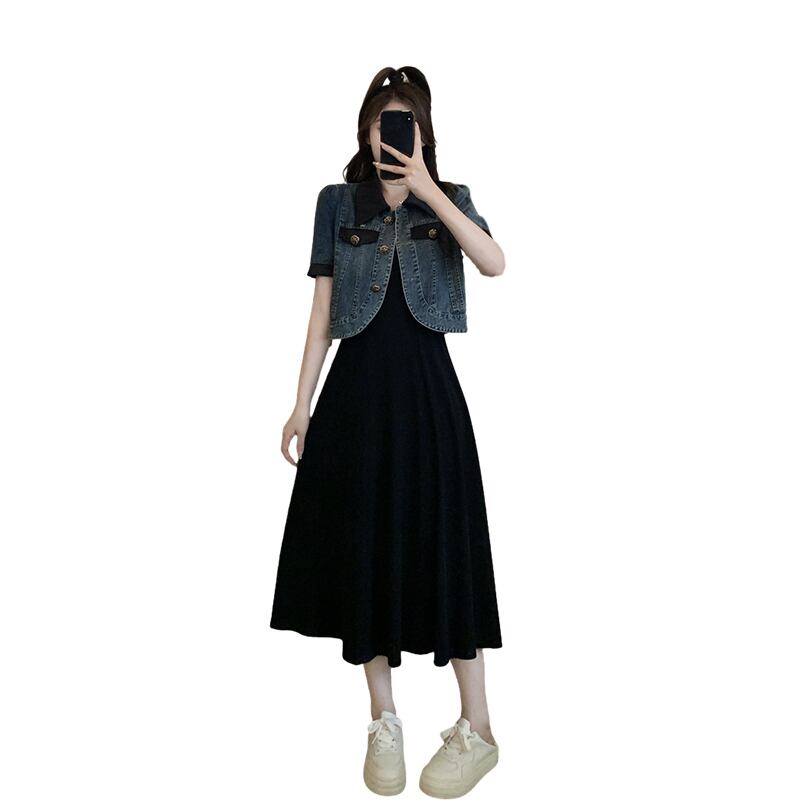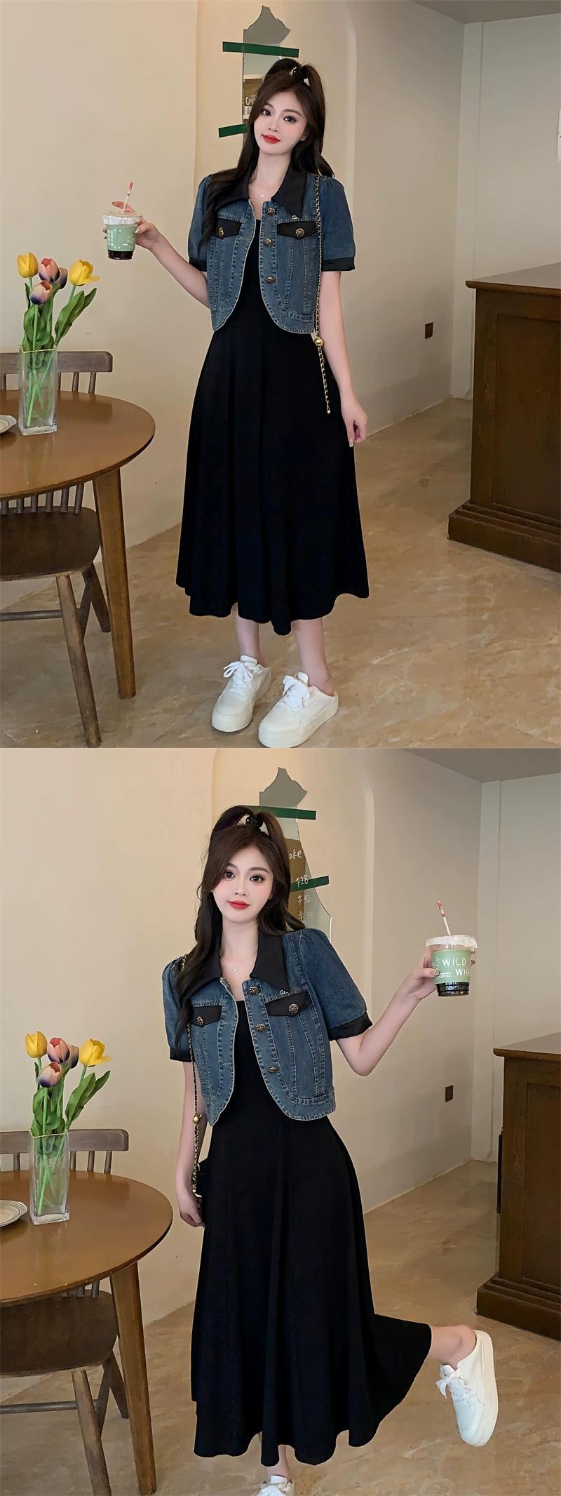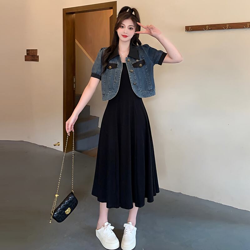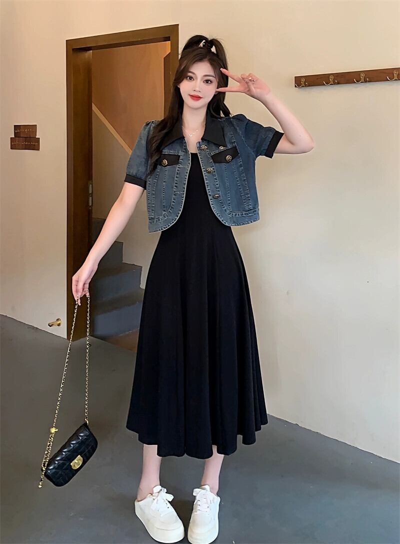 プラスサイズの婦人服 2023 ファットシスター夏の新しいファッションスーツスリムデニムジャケットスリムドレス 2 点セット 大きめサイズ サマー 夏物 8884135250180107