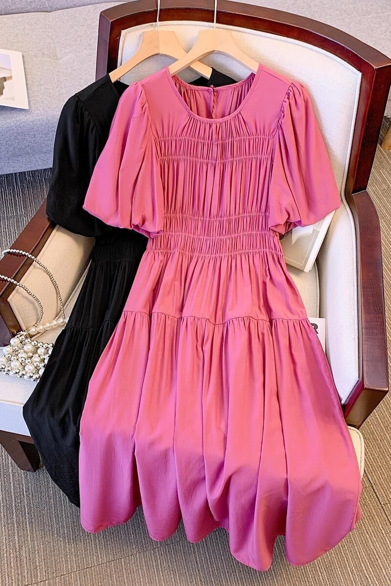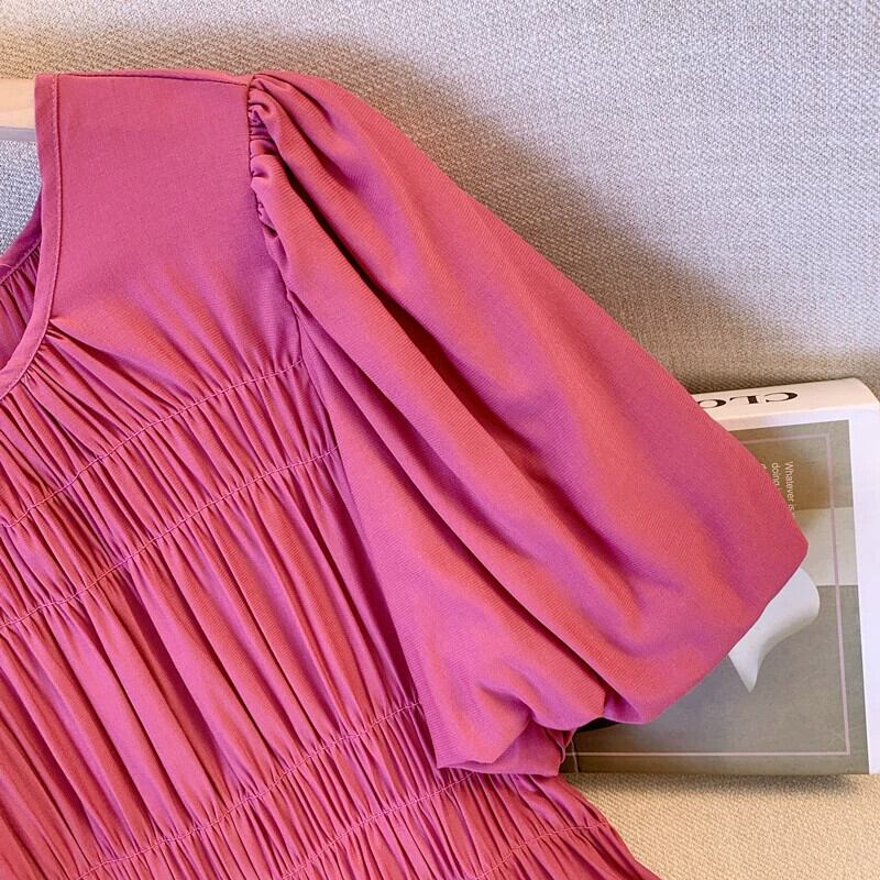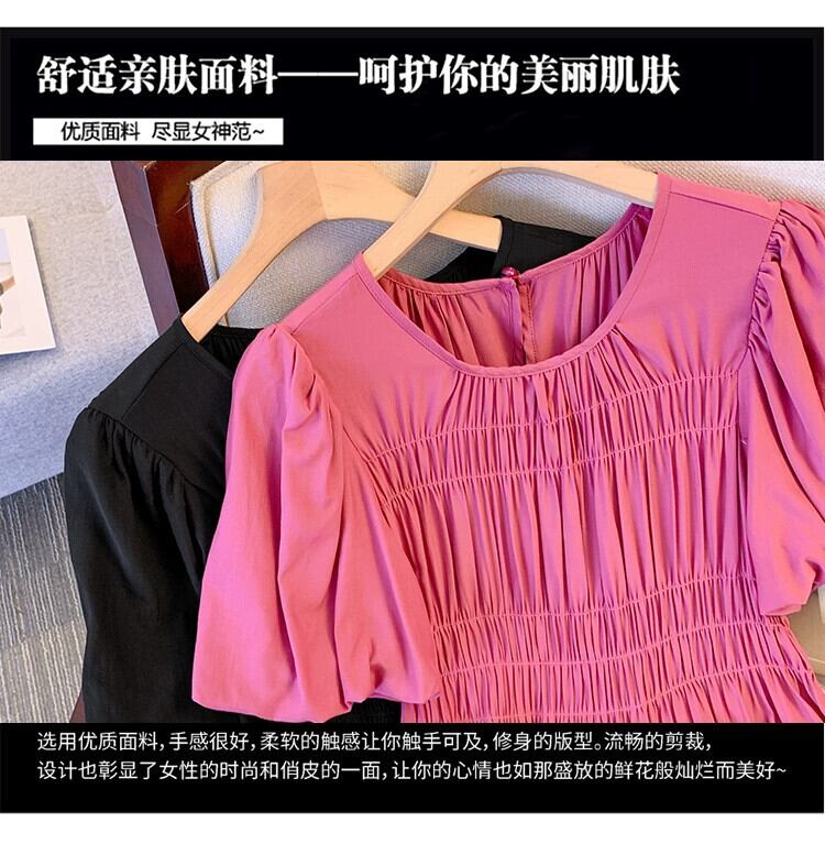 プラスサイズの婦人服 2023 脂肪姉妹夏の新スタイルフレンチスリムティーブレイク初恋キキョウロングスカートパフスリーブドレス 大きめサイズ サマー 夏物 8884184239035322