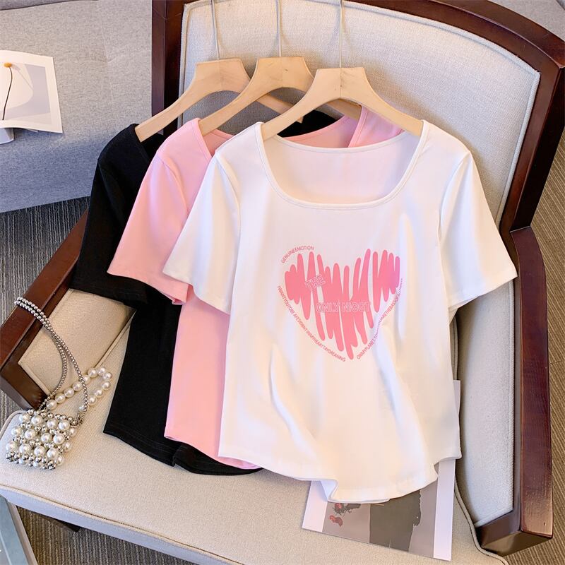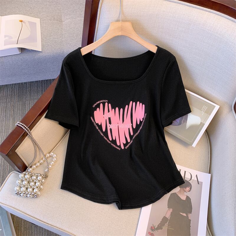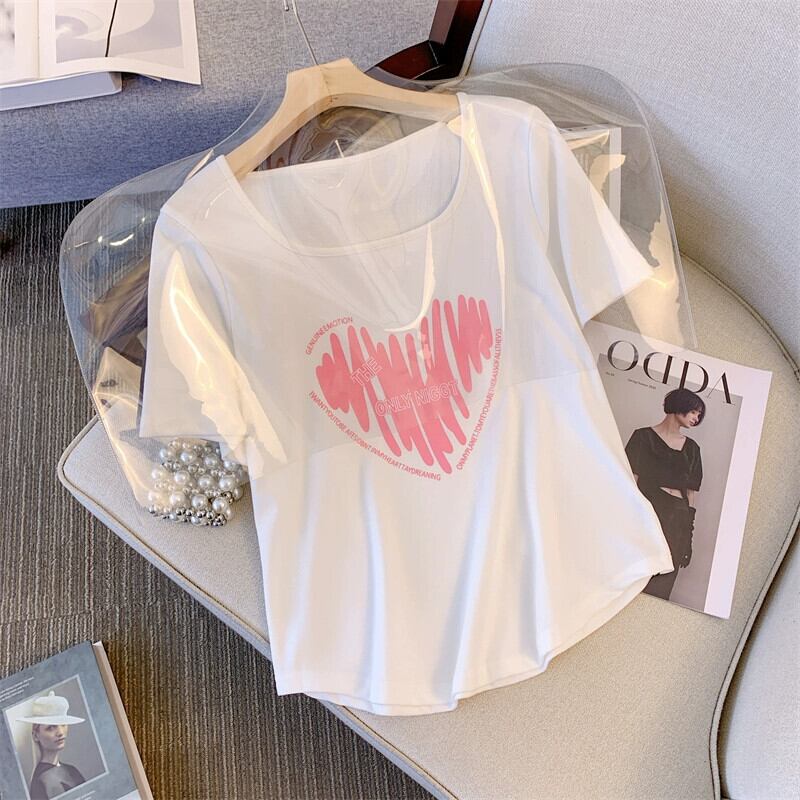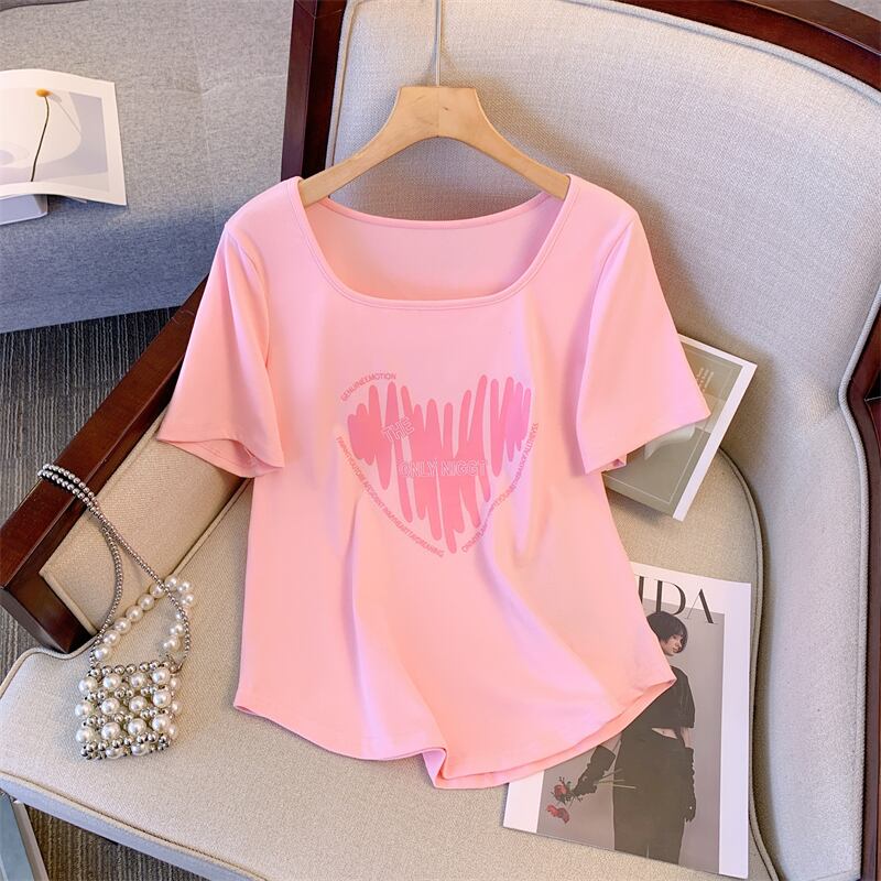 プラスサイズの婦人服 2023 脂肪姉妹夏の新ファッション痩身年齢削減スクエアカラー eign スタイルプリント半袖 Tシャツトップ 大きめサイズ サマー 夏物 スクウェア 8884198196103504