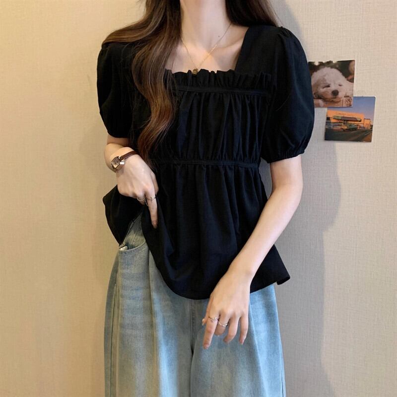 大きいサイズの婦人服ファットシスター夏服ニッチ半袖トップスリムデザインセンスTシャツファットミリプレスプリーツシフォンシャツ 大きめサイズ サマー 夏物 8884178079644625