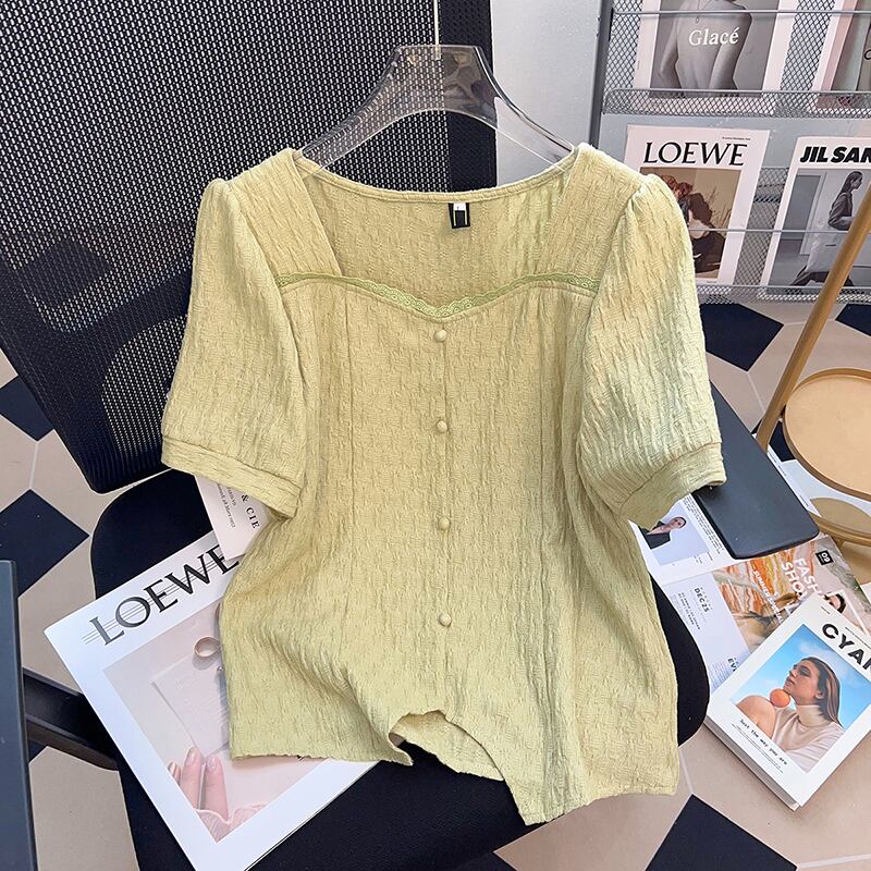 プラスサイズの婦人服 2023 流行の夏の新しいファットシスターファッションニッチハイエンドシャツ木耳ソフト半袖トップ 大きめサイズ サマー 夏物 8884146922297780