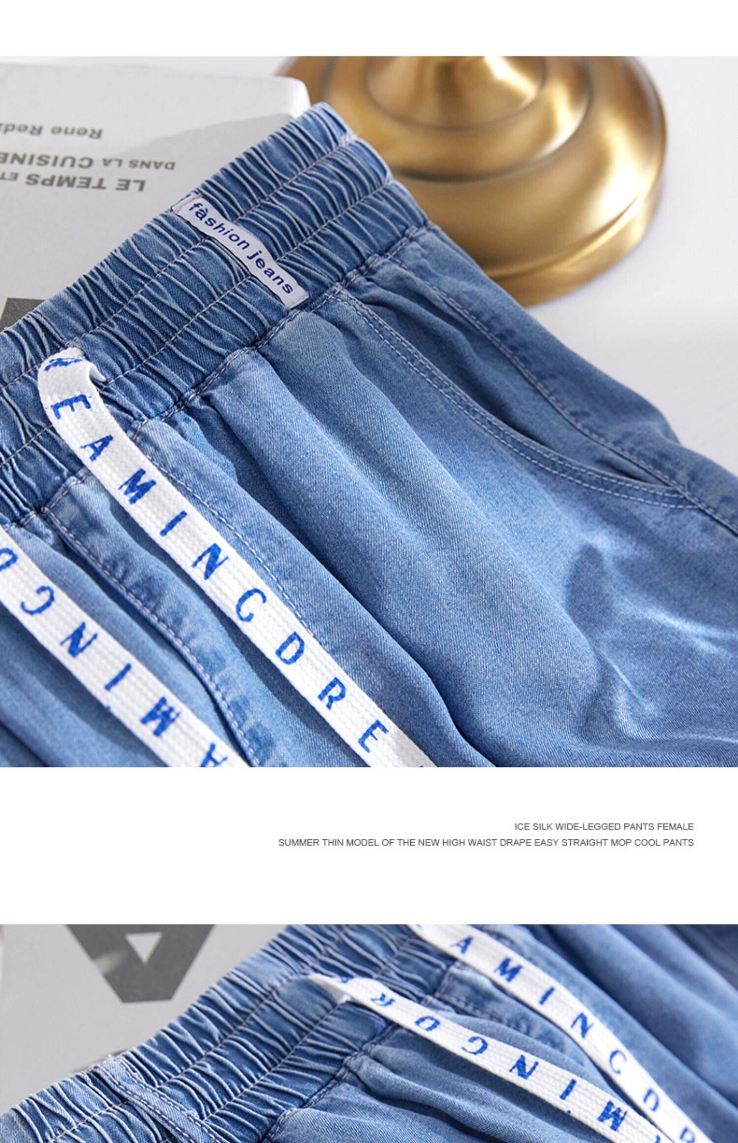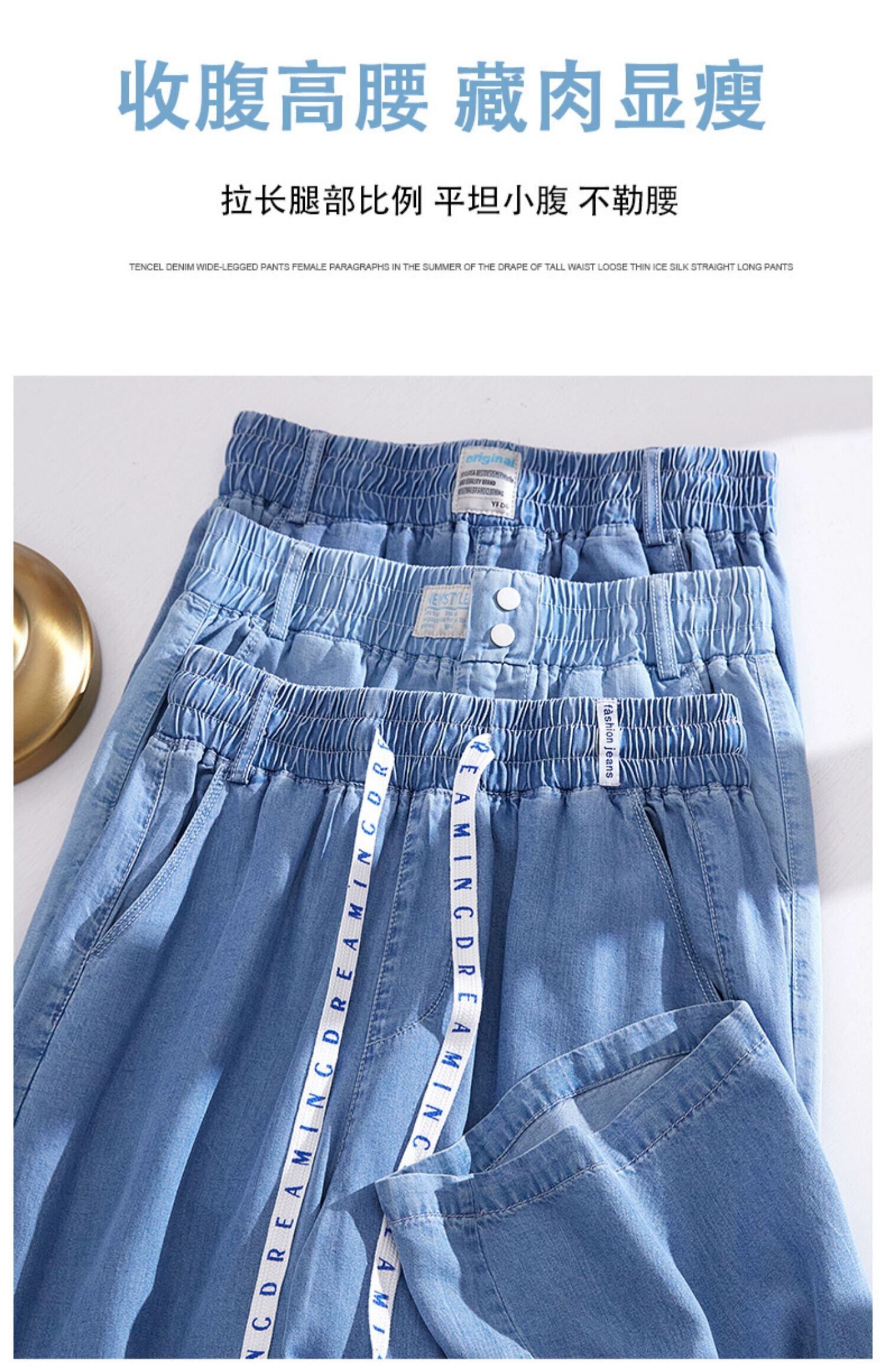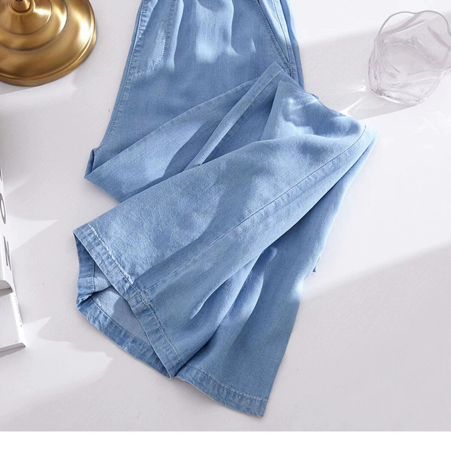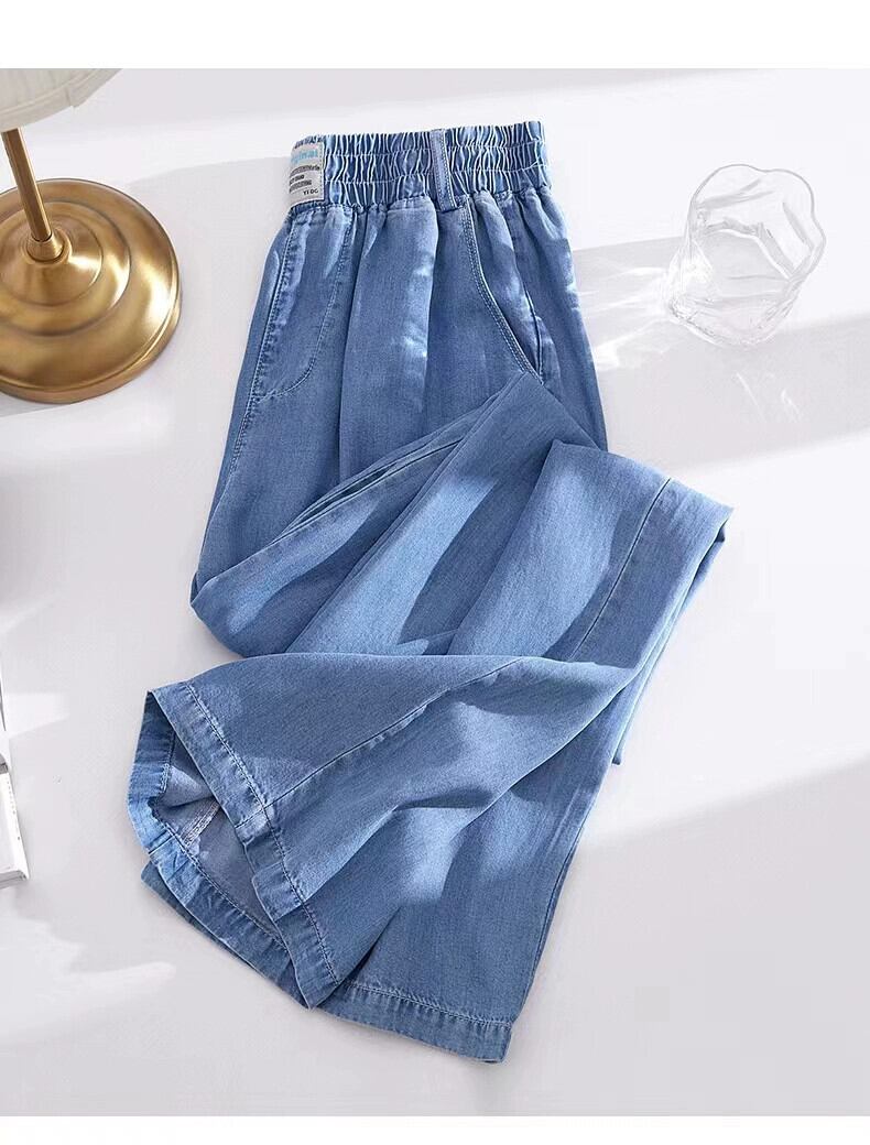 プラスサイズの婦人服 2023 ファットシスター夏新テンセルジーンズ薄部ハイウエストパンツドレープカジュアルワイドレッグパンツ ハイウェスト 大きめサイズ サマー 夏物 ワイドパンツ 8884126528046894