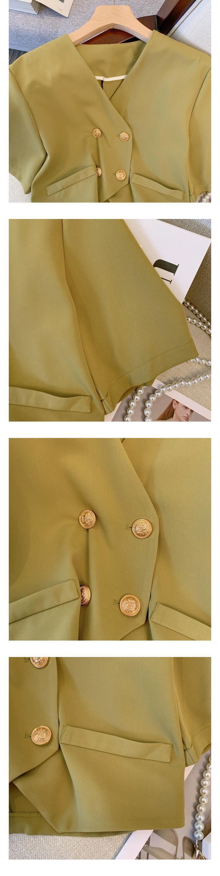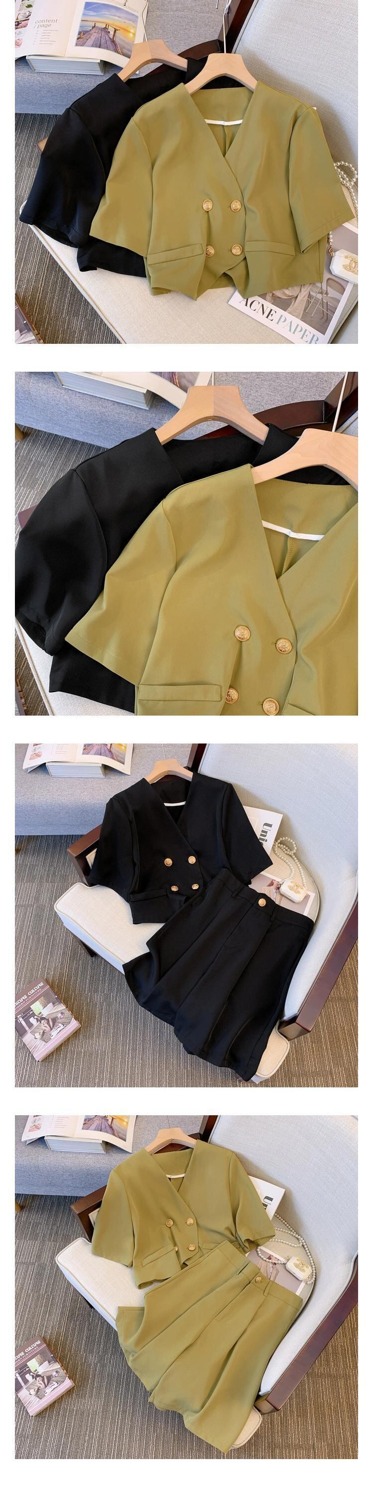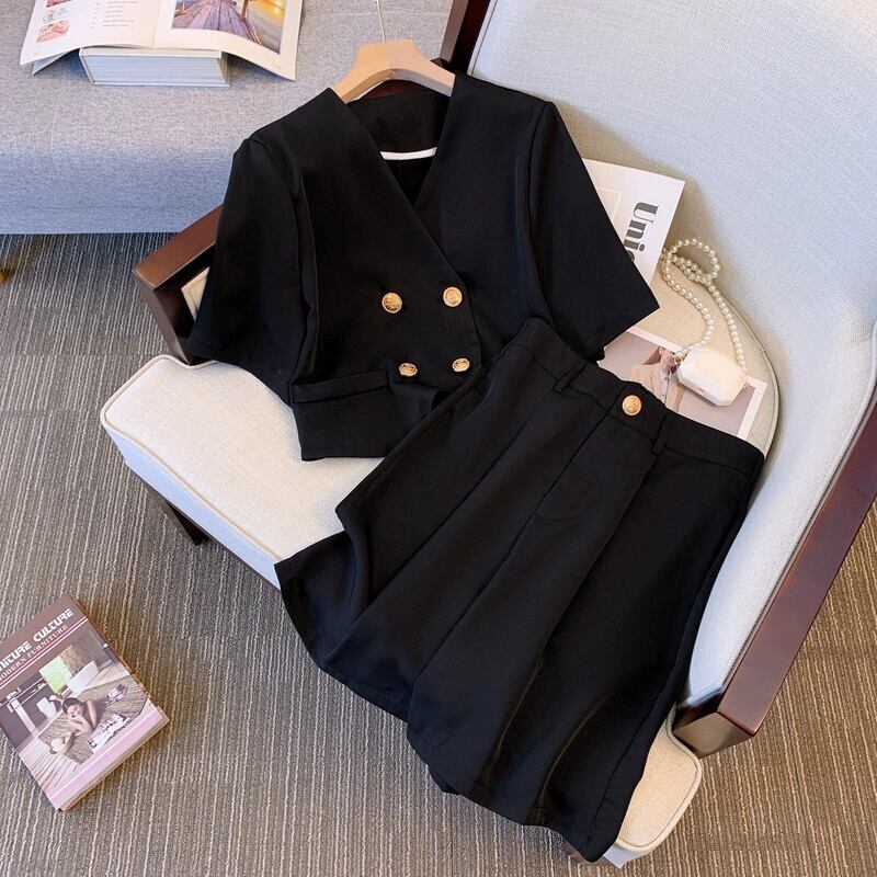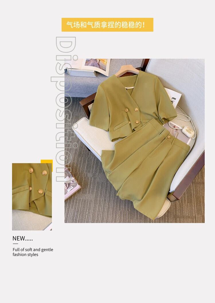 プラスサイズの婦人服 2023 脂肪姉妹夏の新しい気質スーツショートジャケットハイウエスト 5 点パンツツーピーススーツ ハイウェスト 大きめサイズ サマー 夏物 8884165489910474