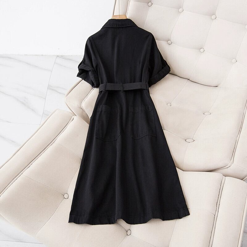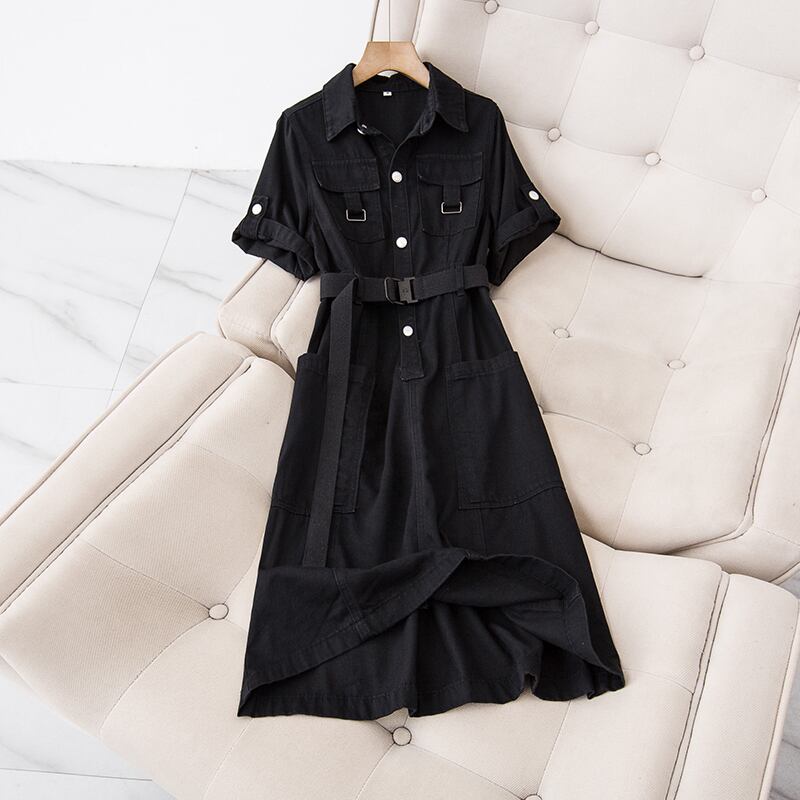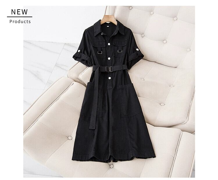 プラスサイズの婦人服 2023 流行の夏の新しいファットシスターレトロ年齢削減デザインセンススカートポロカラーデニムドレス 大きめサイズ サマー 夏物 8884187892650780