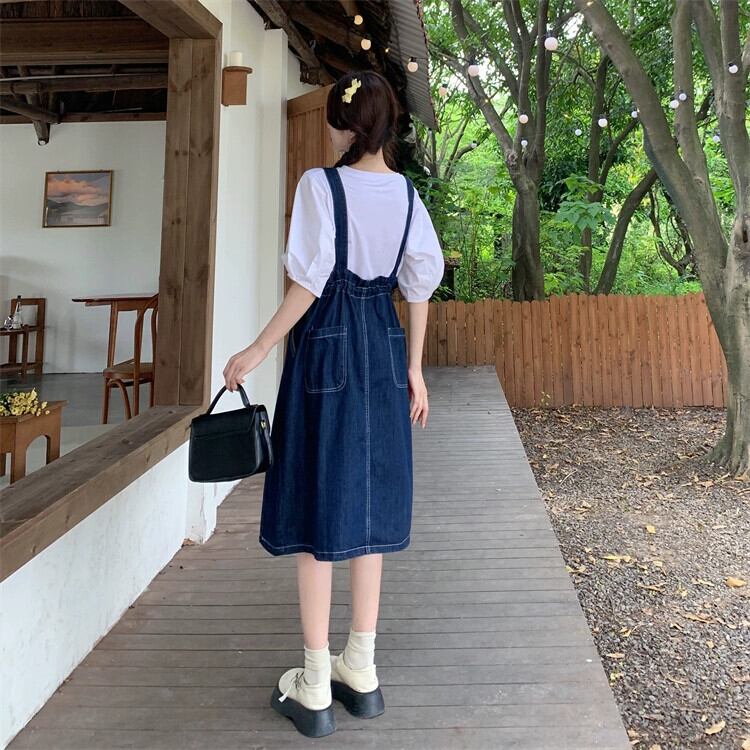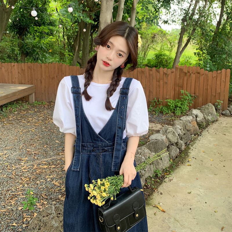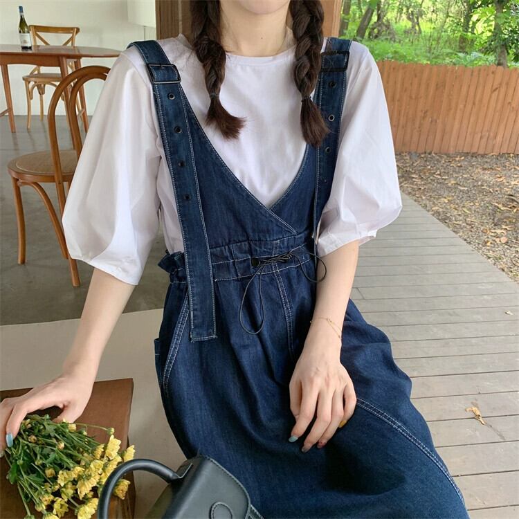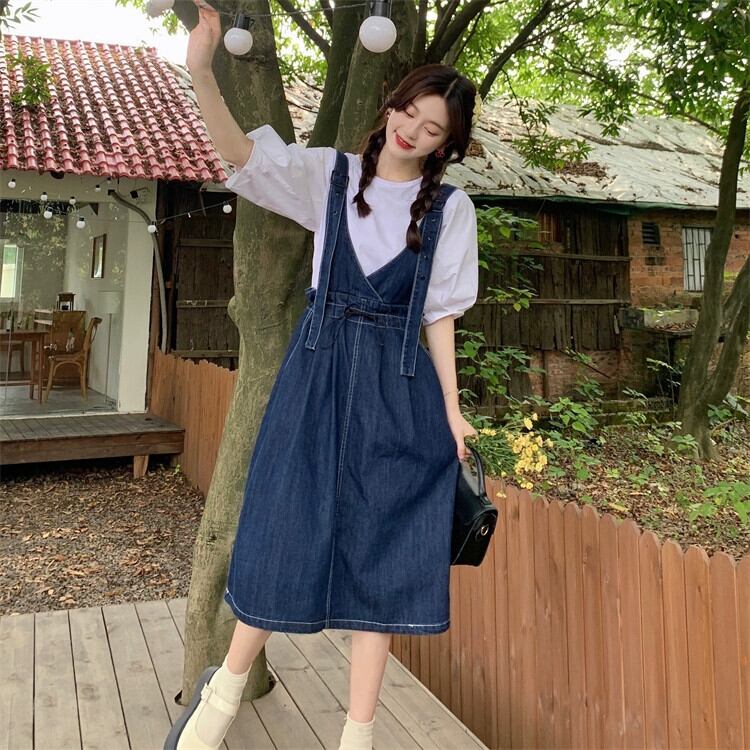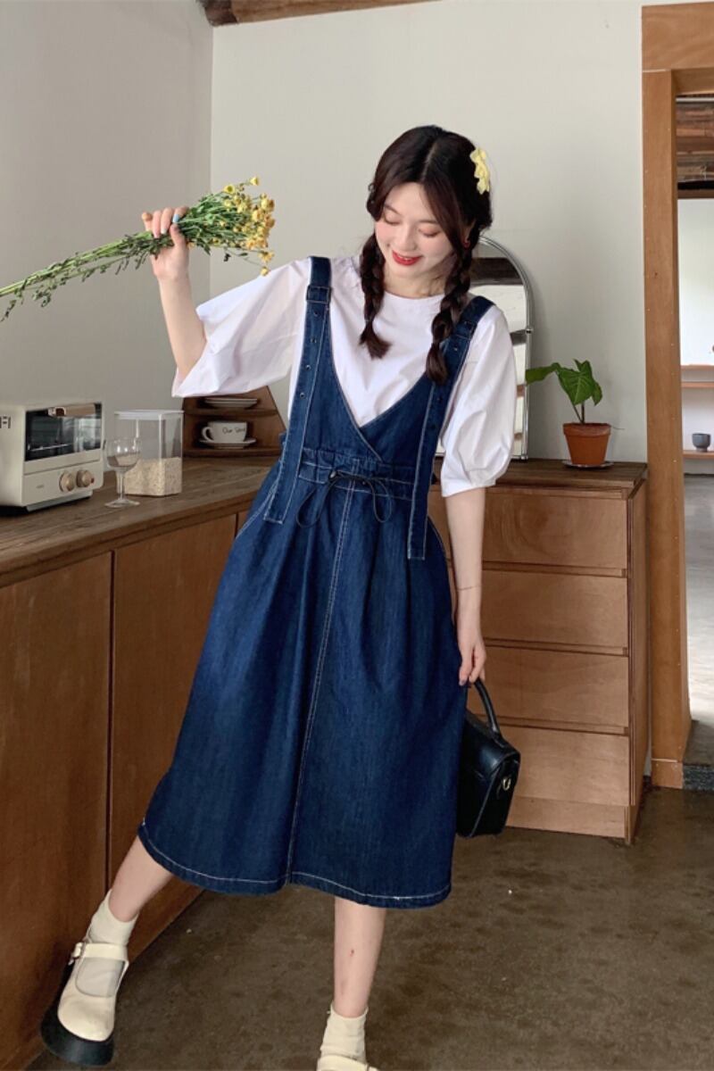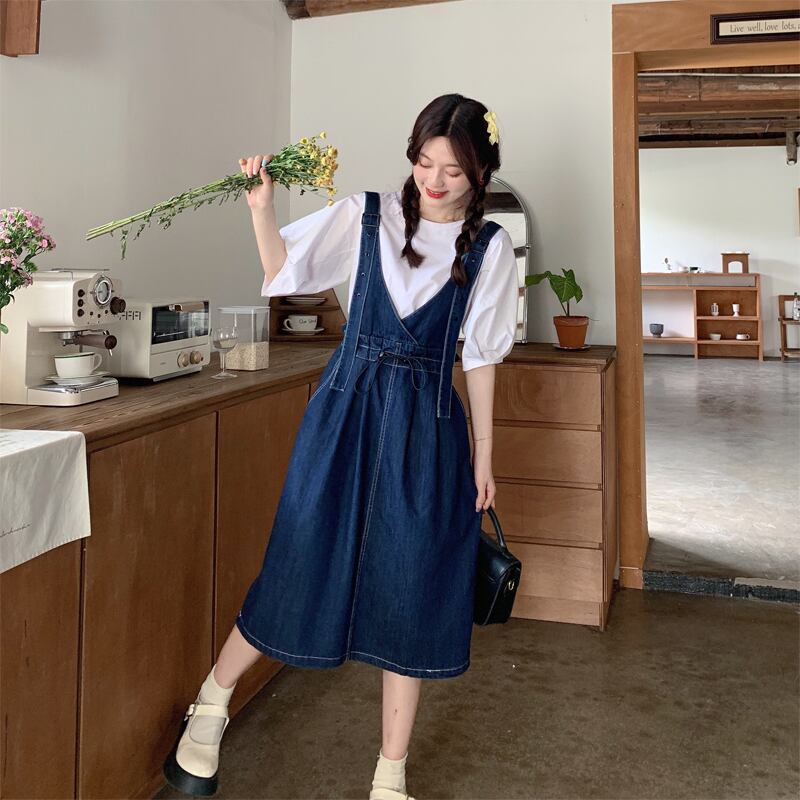 プラスサイズの婦人服 2023 脂肪姉妹夏の新しいファッション甘いデニムサスペンダースカートスリムと年齢を軽減するオールマッチドレス 大きめサイズ 大人ガーリー スウィート キュート カジュアル サマー 夏物 8884132886543642