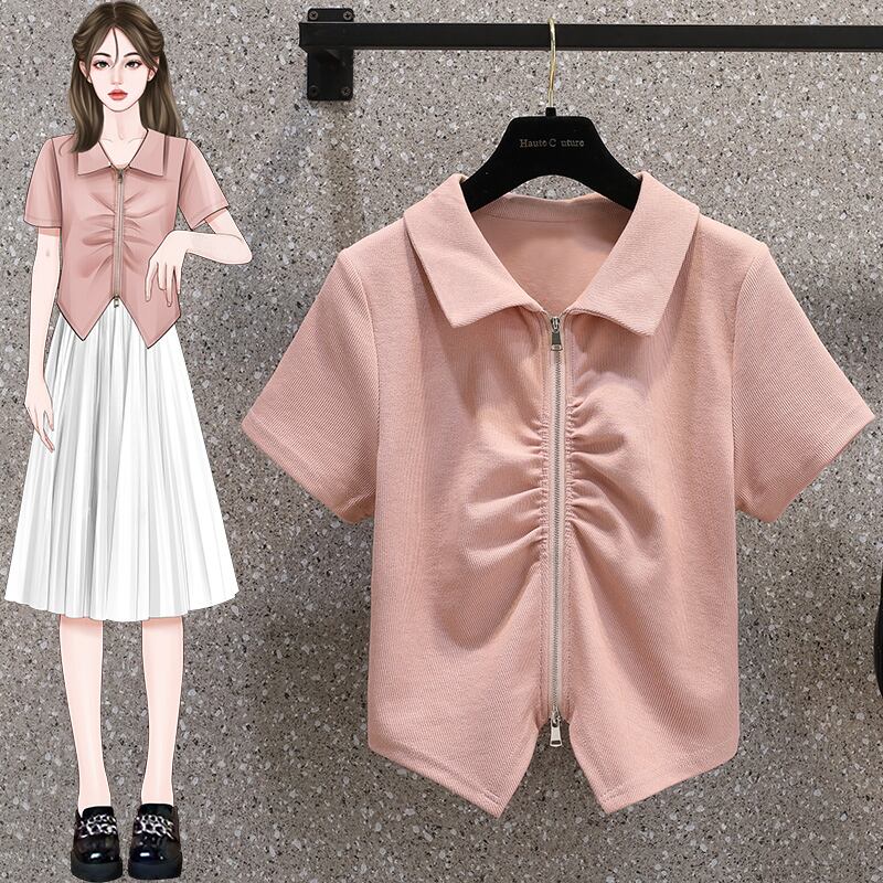 プラスサイズの婦人服 2023 ファットシスター夏新スタイルオールマッチデザインジッパーカーディガン半袖 Tシャツトップ 大きめサイズ サマー 夏物 888413631927371