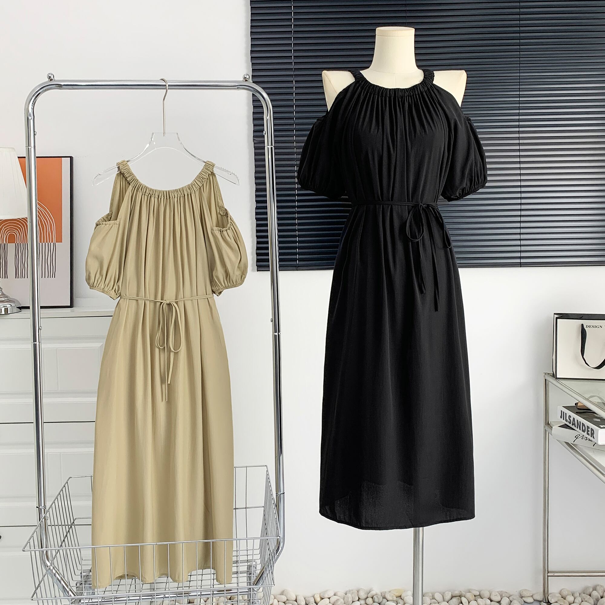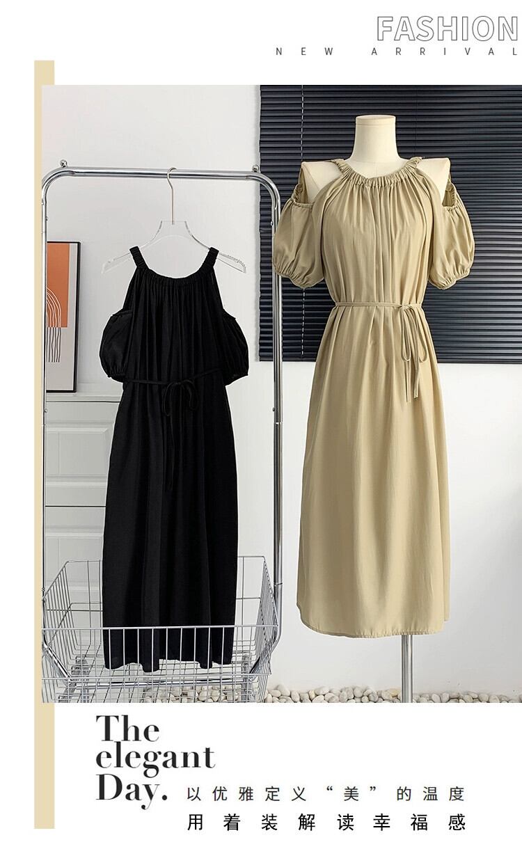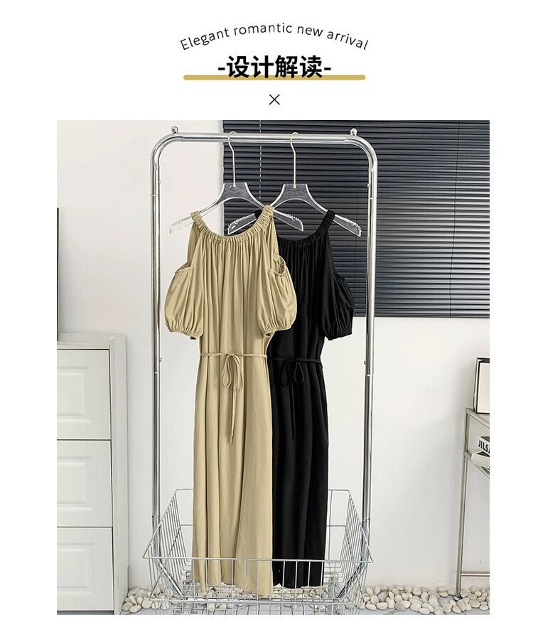 プラスサイズの婦人服 2023 脂肪姉妹夏の新ファッションレトロスリムパフスリーブオフショルダーロングスカートオフショルダードレス 大きめサイズ サマー 夏物 8884170697632760