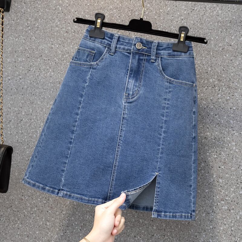 プラスサイズの婦人服 2023 脂肪姉妹夏の新デニムスカート弾性ハイウエスト A ラインスカートスリムラップヒップスカート ハイウェスト エラスティック 伸縮 大きめサイズ サマー 夏物 Aライン 8884128216158113