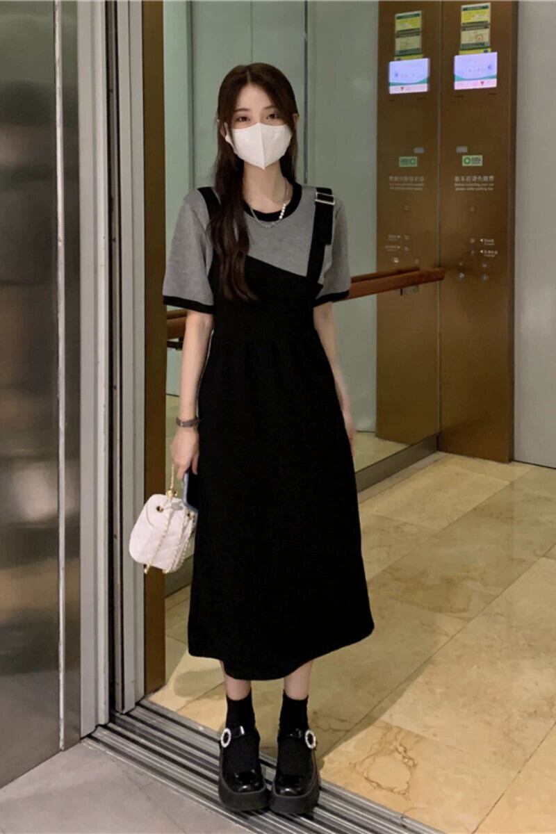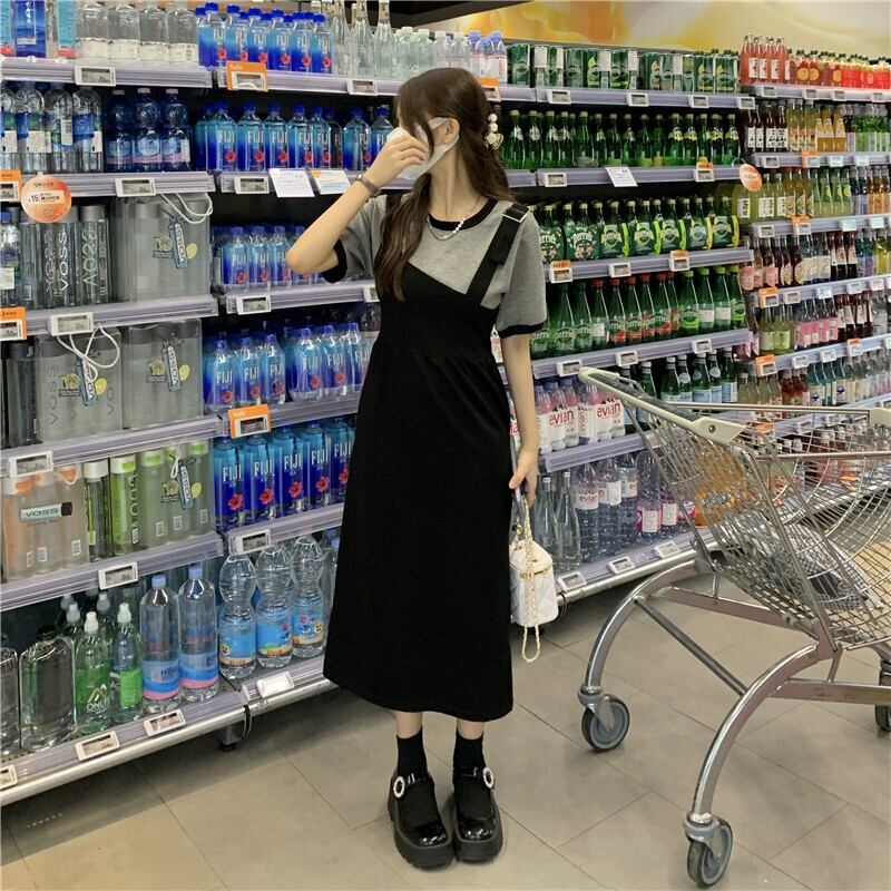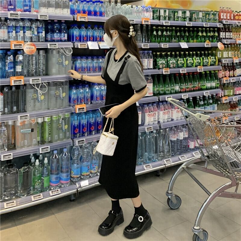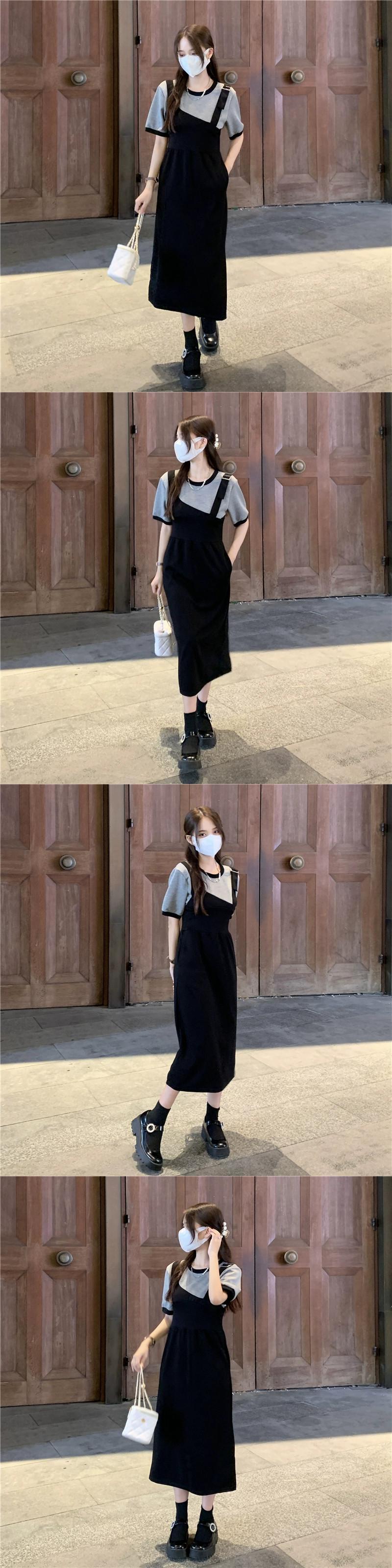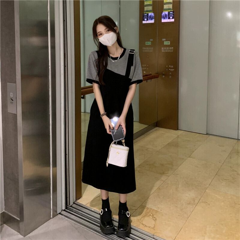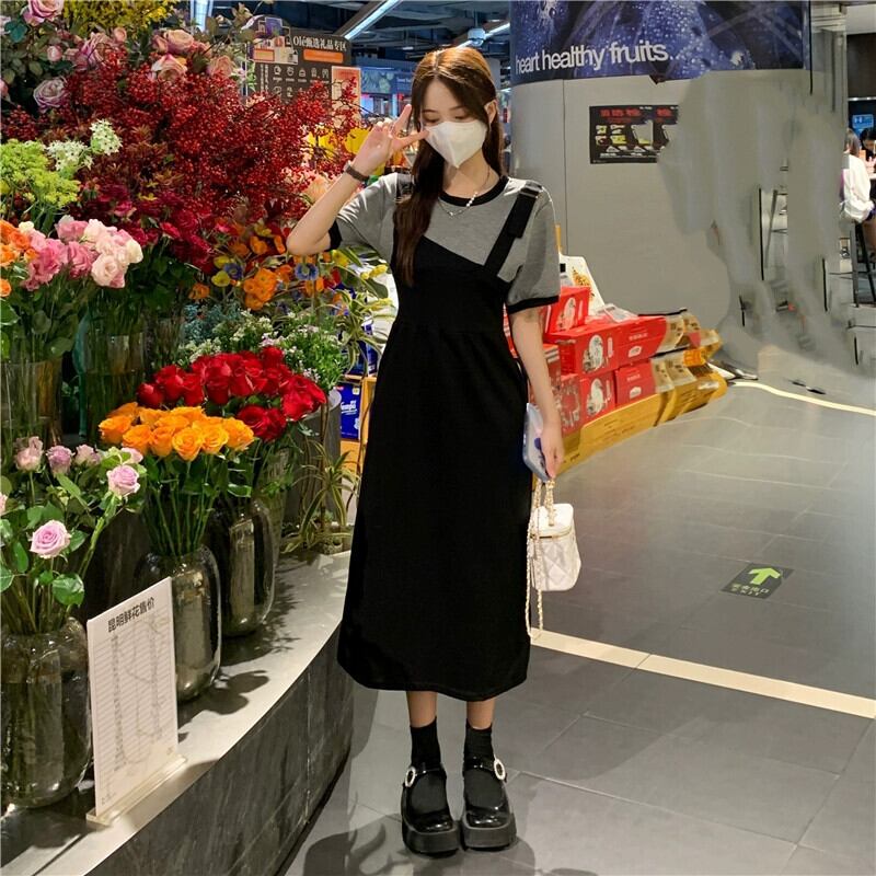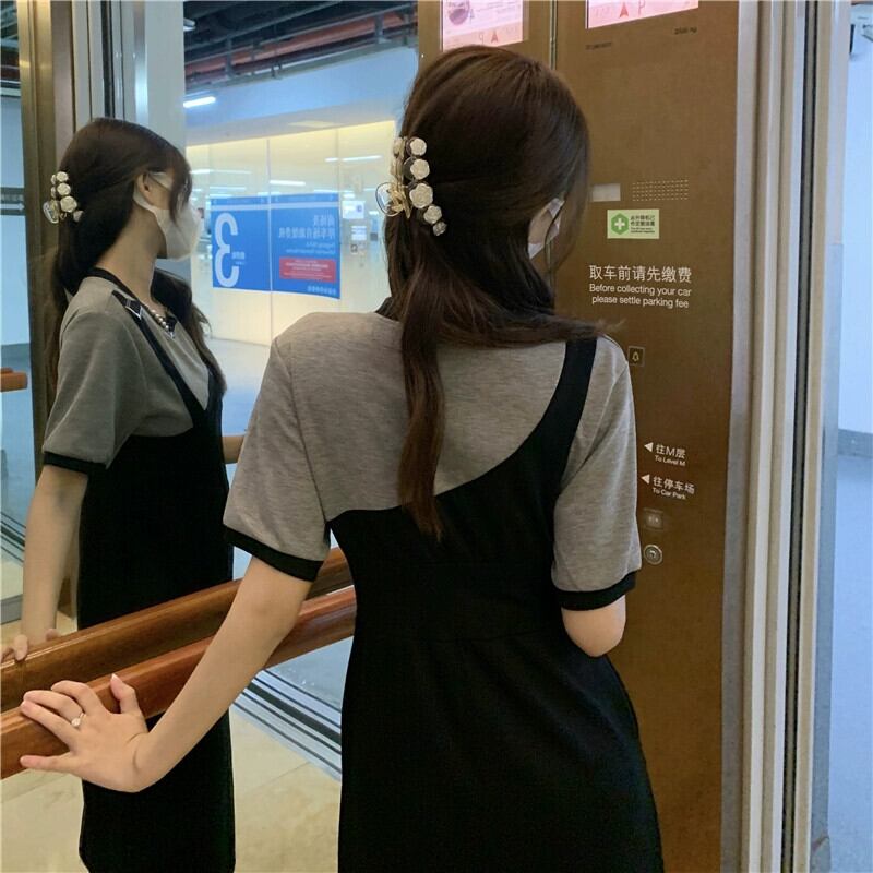 プラスサイズの婦人服 2023 トレンディな夏の新しいファットシスターデザインセンススプライシングスカート多用途フェイクツーピースコントラストカラードレス 大きめサイズ サマー 夏物 8884127031028658