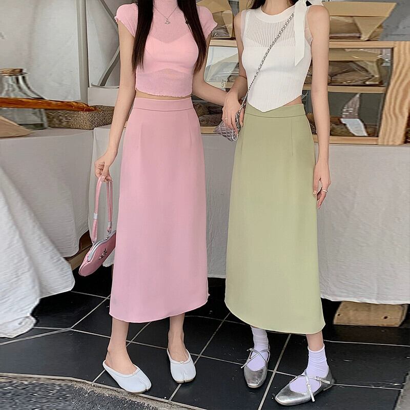 プラスサイズの婦人服 2023 ファットシスター夏新作スーツスカートデザインセンスハイウエストミドル丈 a ラインロングスカート ハイウェスト 大きめサイズ サマー 夏物 Aライン 8884138042830517