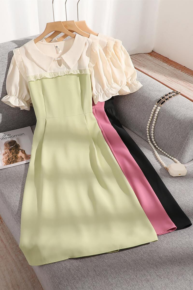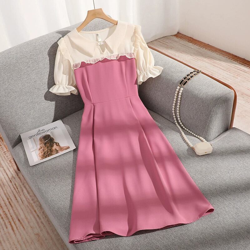 プラスサイズの婦人服 2023 太った妹の夏の新しいフランスの気質 a ラインスカート年齢を軽減し、薄いフリルドレス 大きめサイズ サマー 夏物 Aライン 8884183512173351