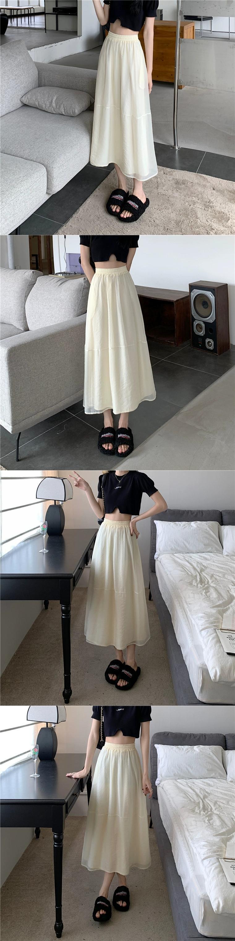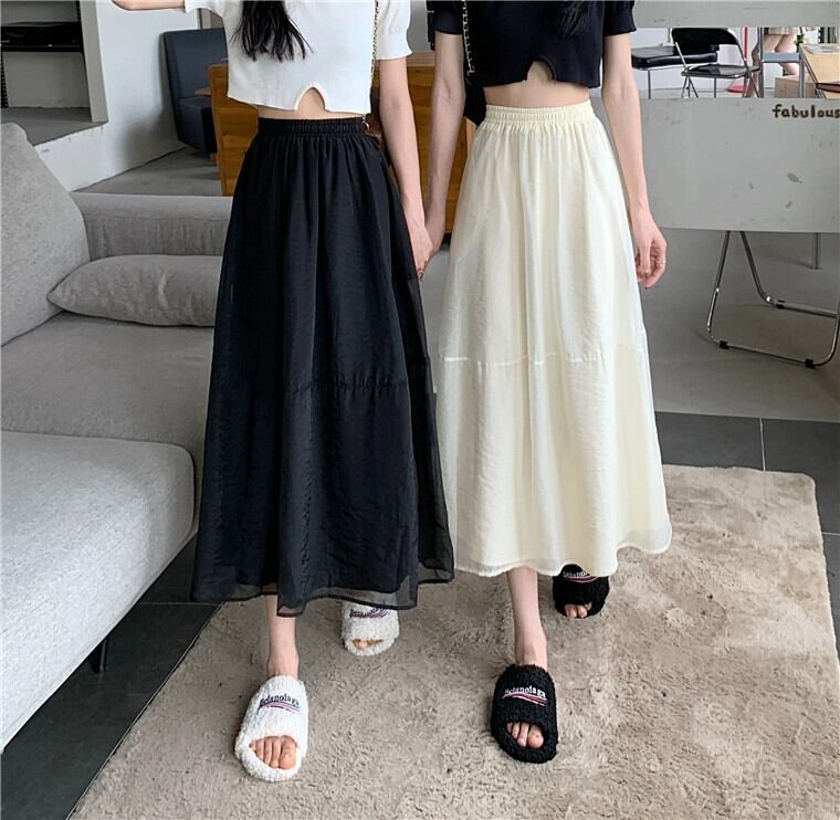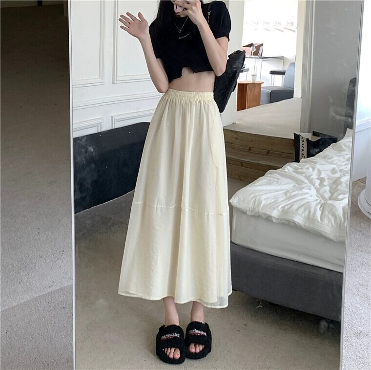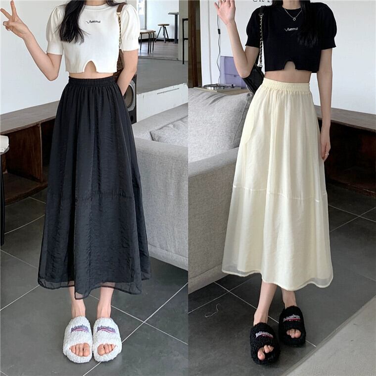 プラスサイズの婦人服 2023 脂肪姉妹夏の新弾性ウエストガーゼスカートルーズスリムミッドレングス a ラインスカートスカート エラスティック 伸縮 大きめサイズ サマー 夏物 Aライン 8884179660437107