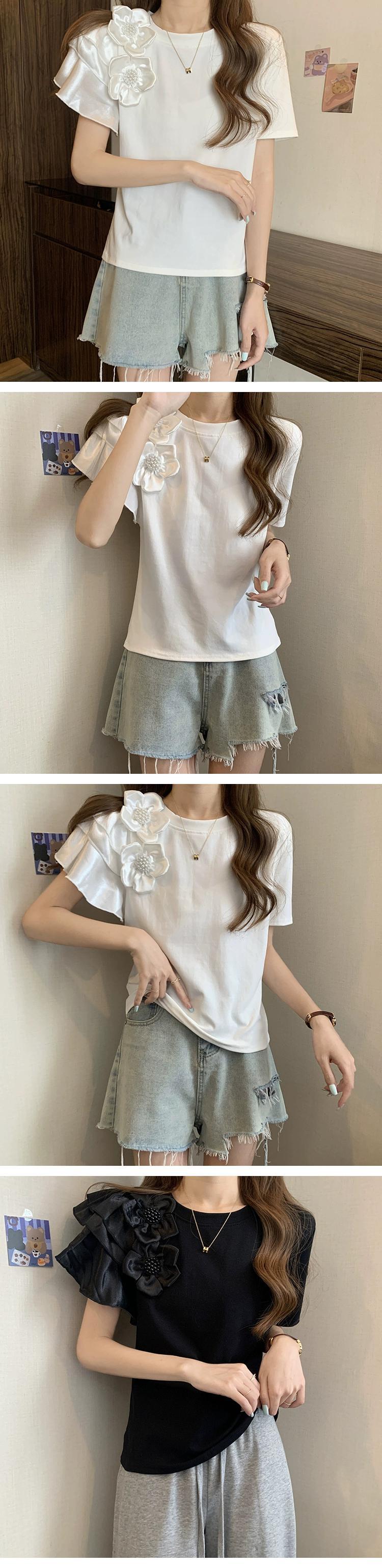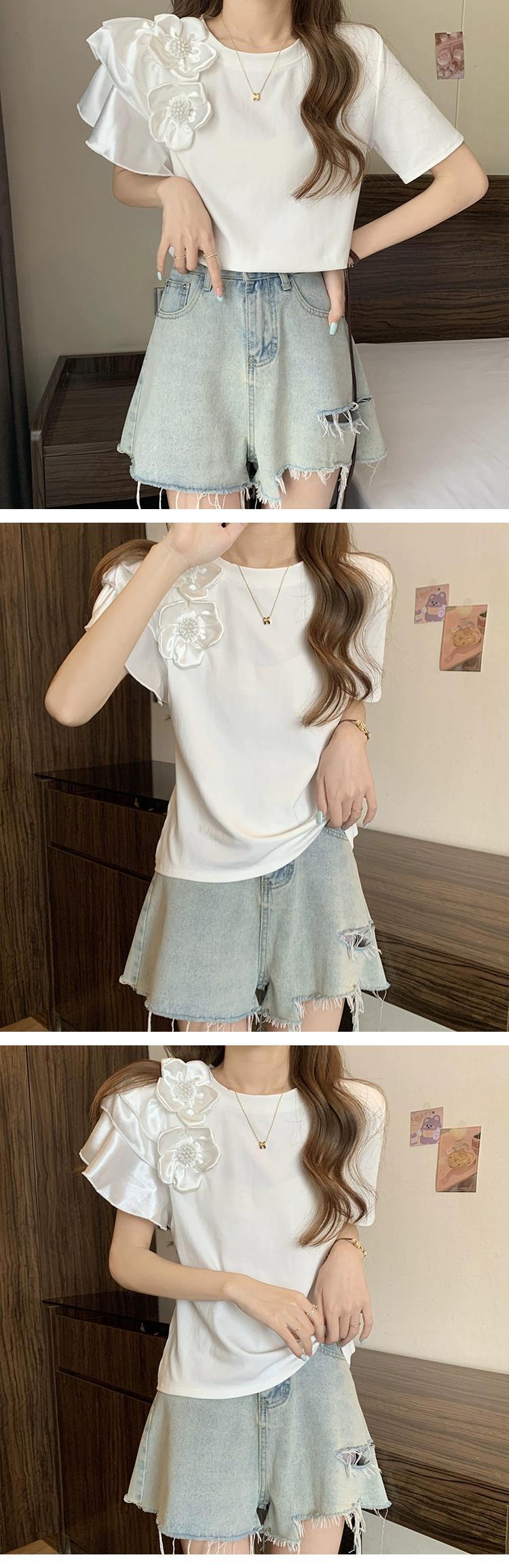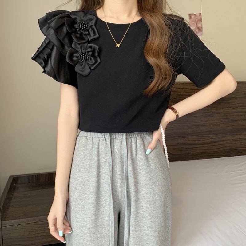 プラスサイズの婦人服 2023 脂肪姉妹夏の新ファッション年齢削減デザインの蓮の葉のエッジの薄い Tシャツトップス小さなシャツ 大きめサイズ サマー 夏物 888412593866334