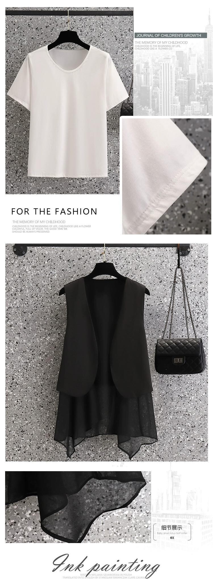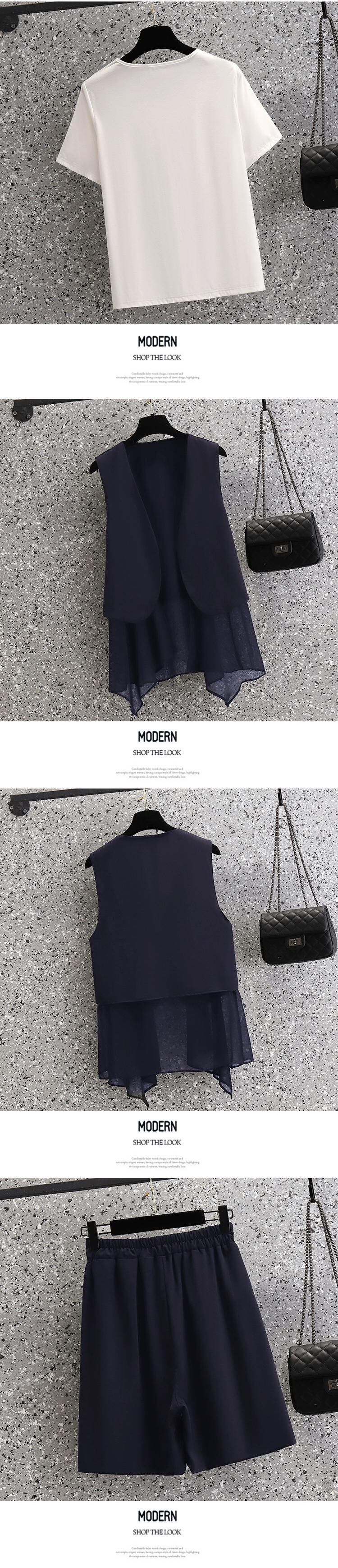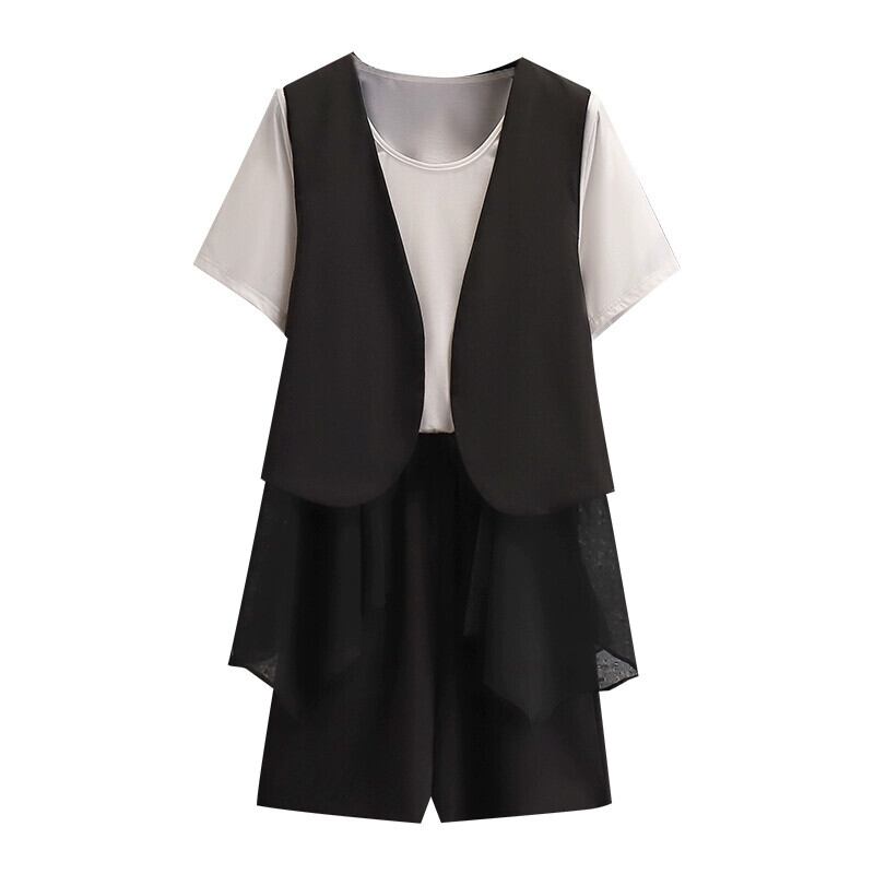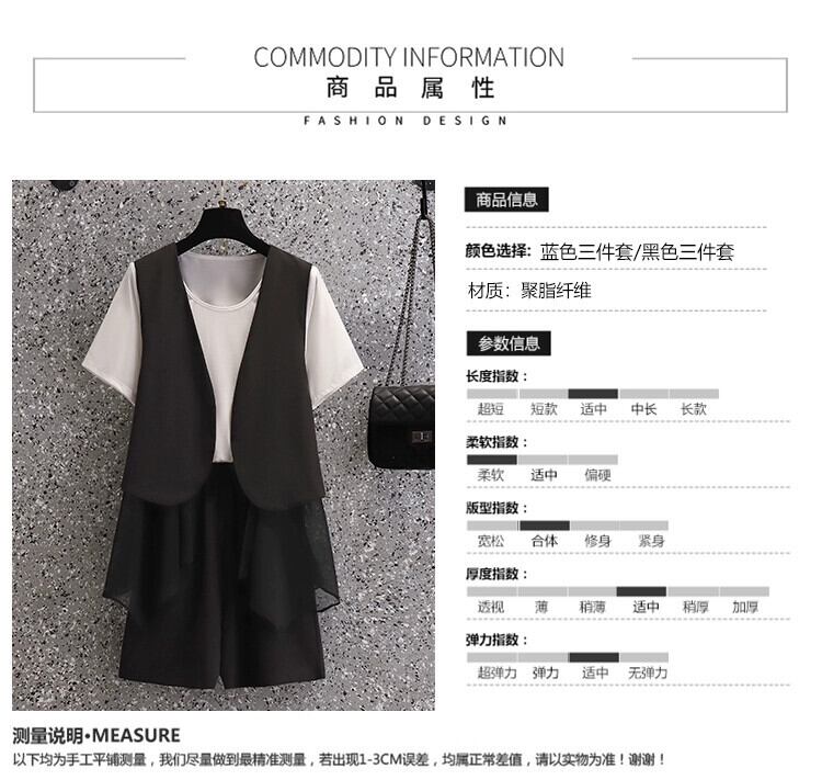 プラスサイズの婦人服 2023 脂肪姉妹夏の新ファッションスーツスリム半袖トップベストショーツスリーピーススーツ 大きめサイズ サマー 夏物 ブルマー 8884173566880224