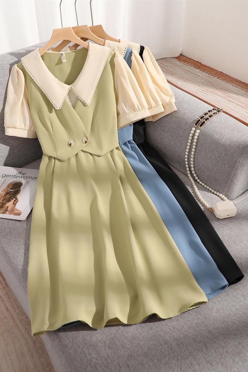 大きいサイズの婦人服 2023 脂肪姉妹夏の新しい a ラインスカート人形の襟不規則な木耳シフォンドレス 大きめサイズ サマー 夏物 Aライン 8884162840328087