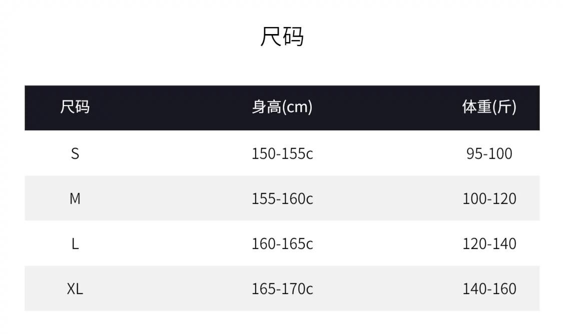 体重表記について、中国は2倍の体重で表記されています。例えば、Lサイズ→推奨90kg〜116kgであれば、45~58kg程度の方が対象になります。海外サイトを使用する方はお気を付けください。