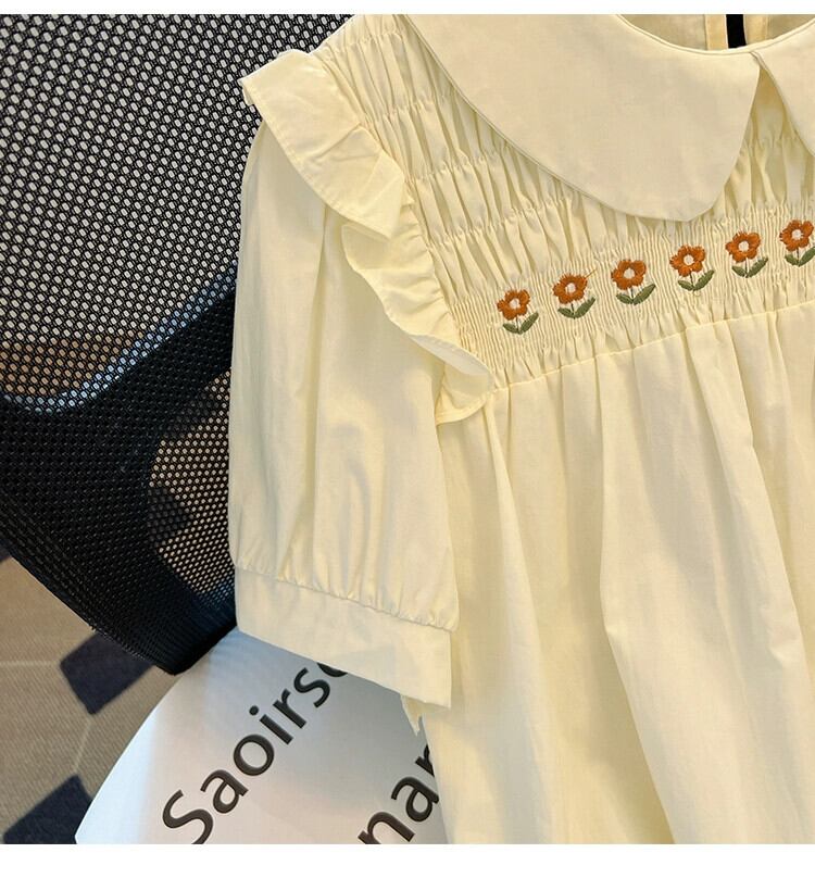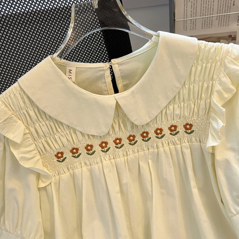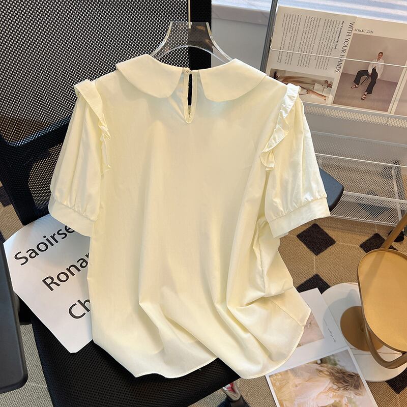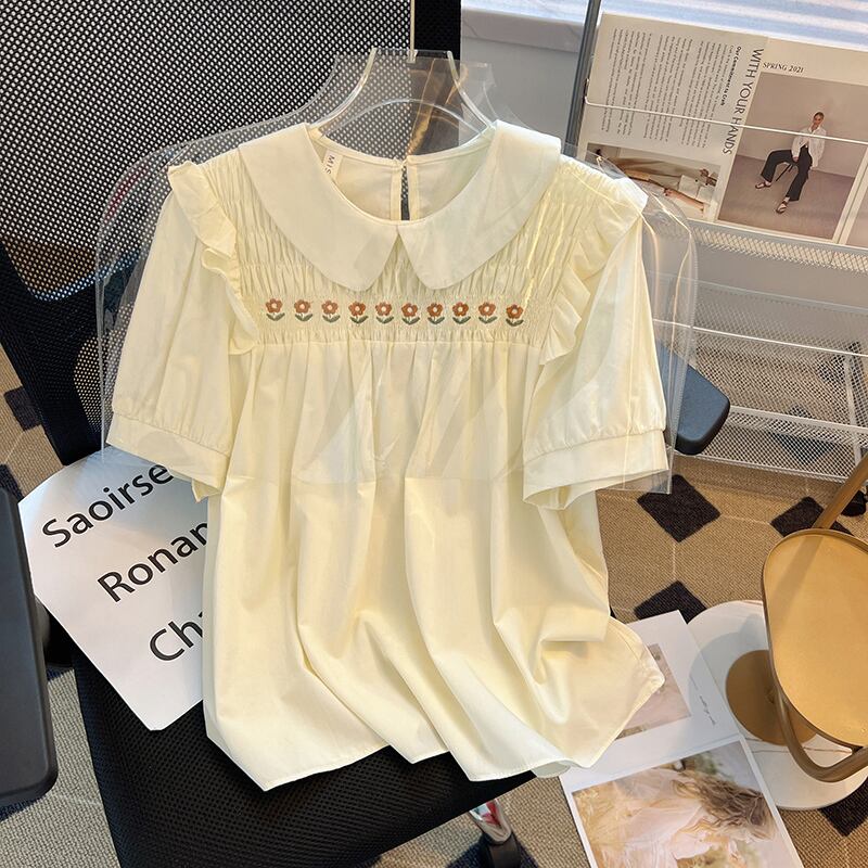 プラスサイズの婦人服 2023 脂肪姉妹夏の新しい花刺繍人形の襟のデザインセンスニッチフレンチシャツトップ 大きめサイズ サマー 夏物 フラワーデザイン 888412410502717
