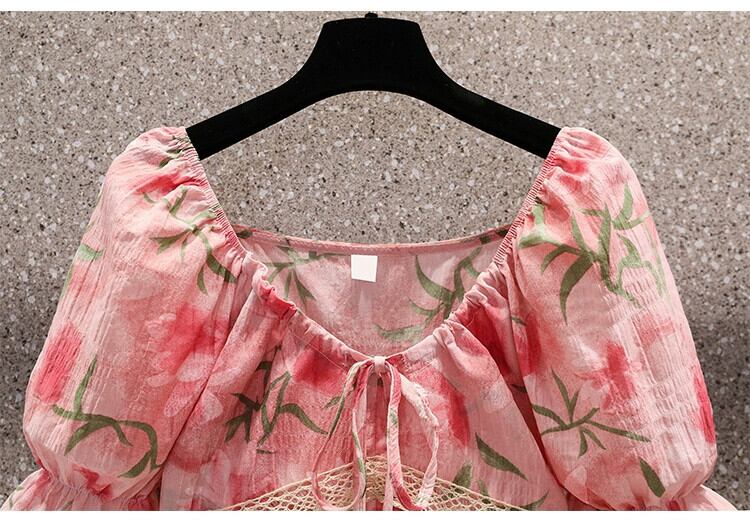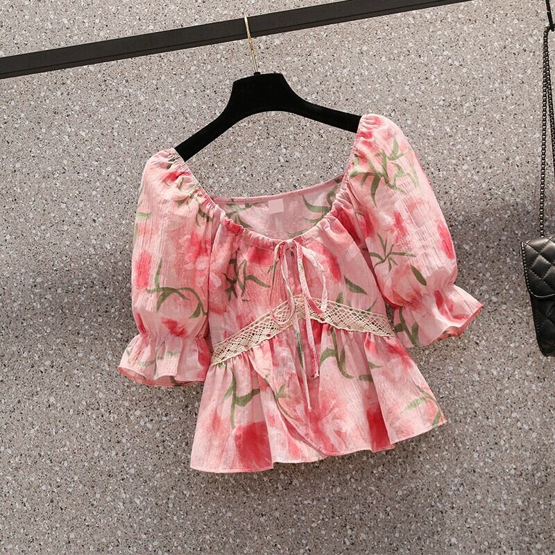 プラスサイズの婦人服 2023 夏服ファットシスターフレンチワンショルダー暖かい半袖シャツお腹をカバーするレースニッチトップ 大きめサイズ サマー 夏物 8884152381828938