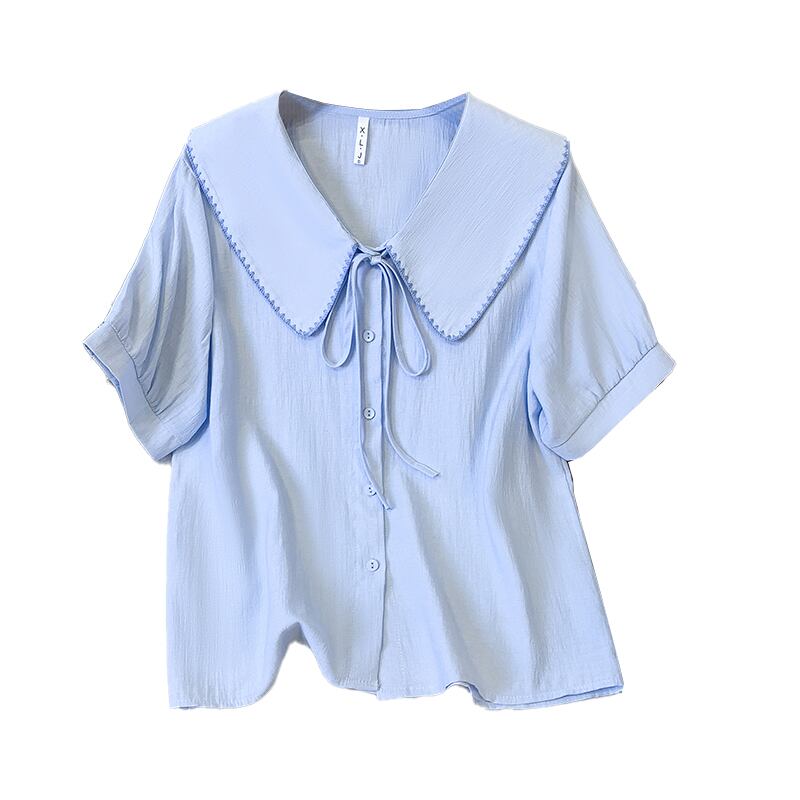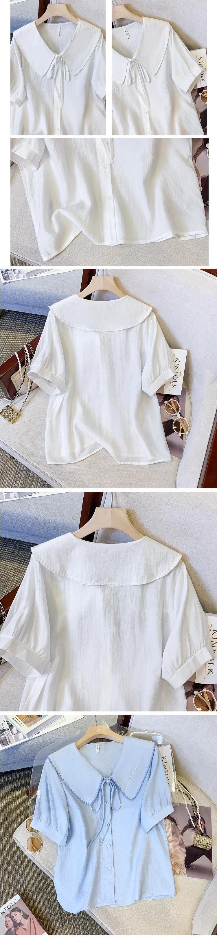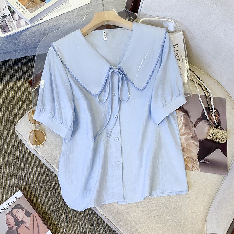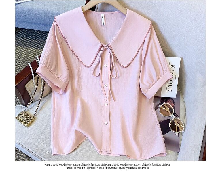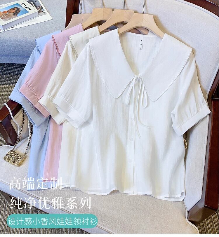 プラスサイズの婦人服 2023 ファットシスター夏新フレンチスイートショートトップ人形襟バブル半袖シャツ 大きめサイズ 大人ガーリー スウィート キュート カジュアル サマー 夏物 8884110301102736