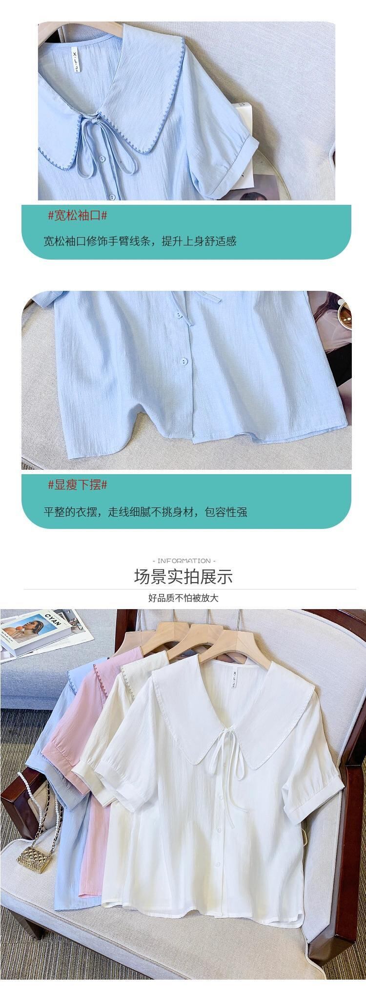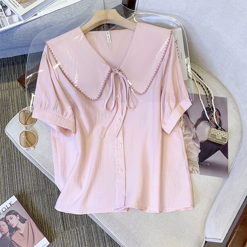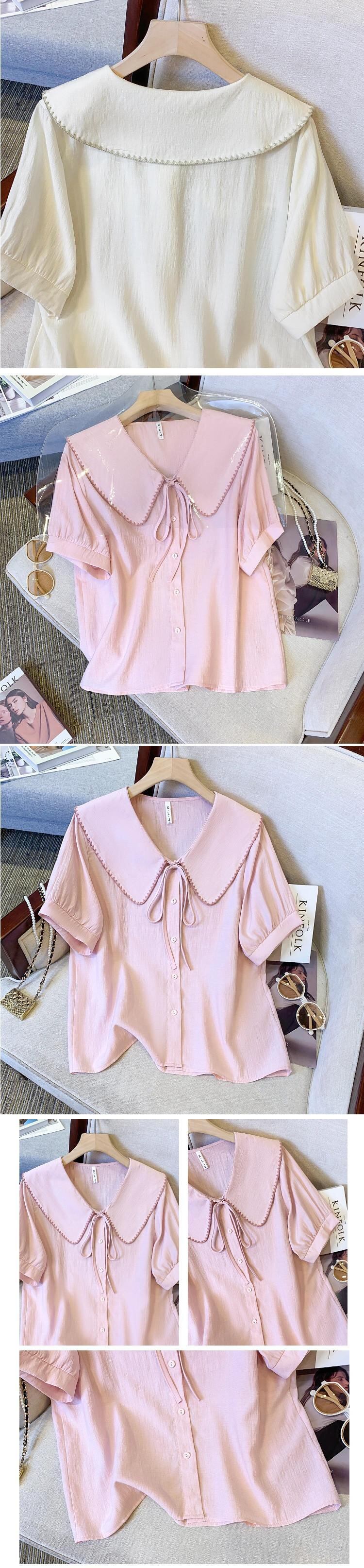 プラスサイズの婦人服 2023 ファットシスター夏新フレンチスイートショートトップ人形襟バブル半袖シャツ 大きめサイズ 大人ガーリー スウィート キュート カジュアル サマー 夏物 8884110301102736