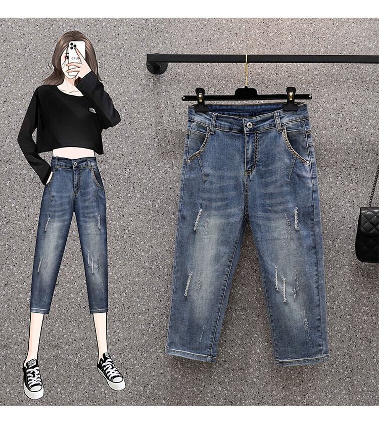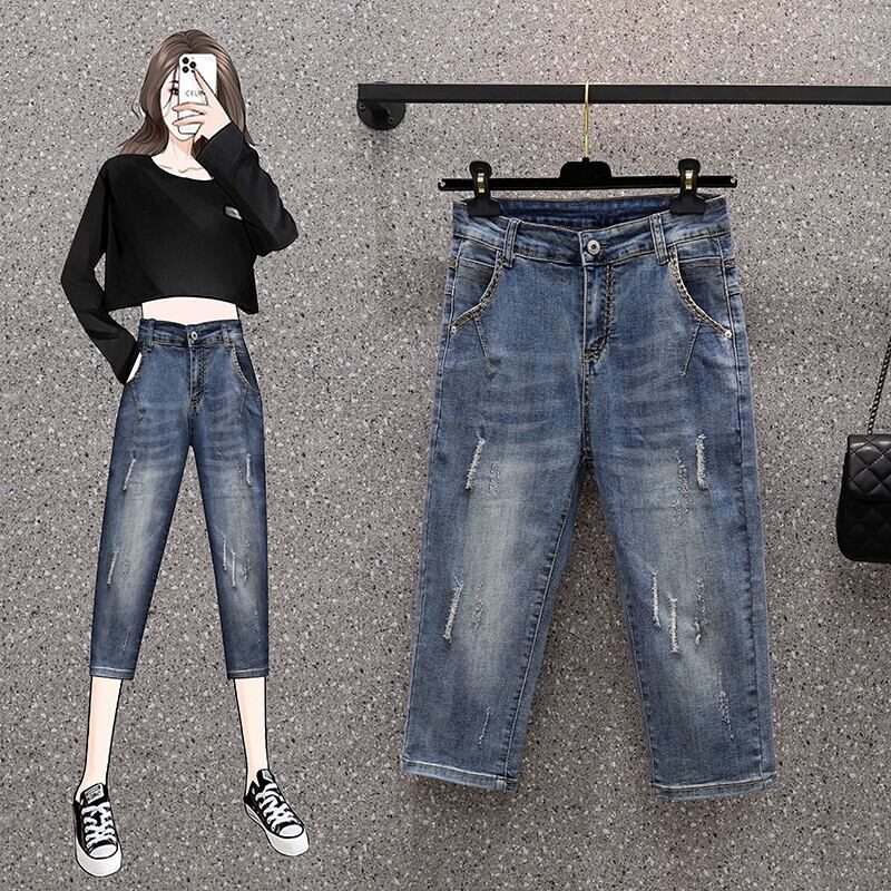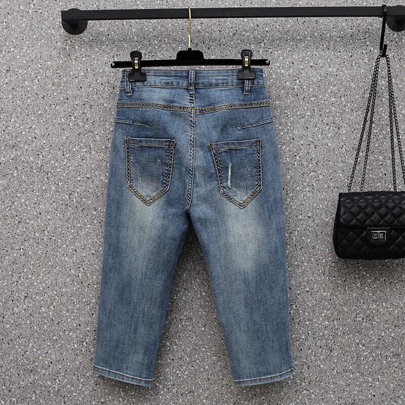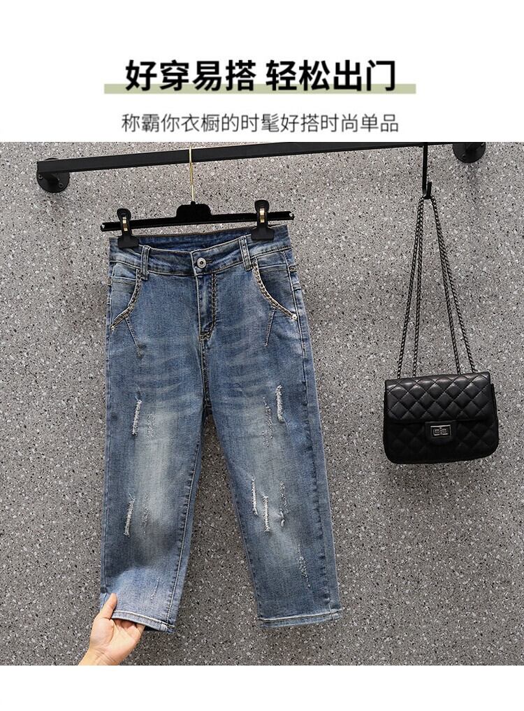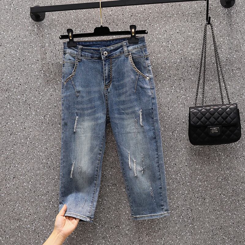 2023年夏のプラスサイズの婦人服新しいファットシスター薄いセクションクロップドソフトジーンズ緩くて薄い足ハーラン 大きめサイズ サマー 夏物 8884110248550950