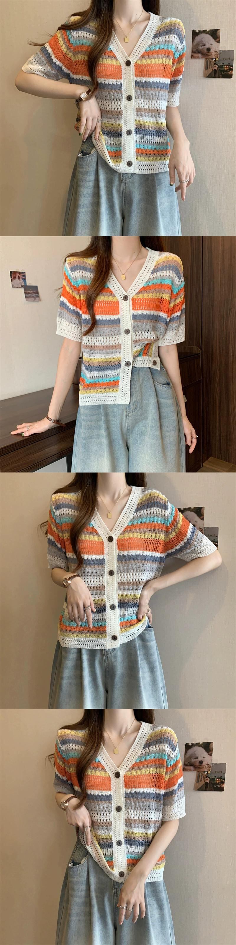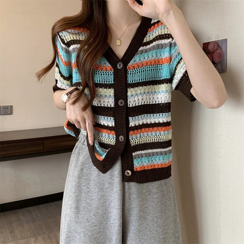 プラスサイズの婦人服 2023 トレンディな夏の新しいファットシスターレトロフックフラワー中空 Tシャツ虹色アインスタイルオールマッチトップ 大きめサイズ サマー 夏物 フラワーデザイン 8884188195364256