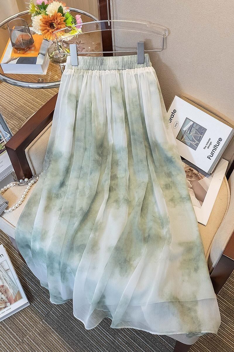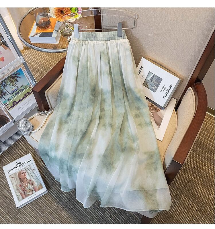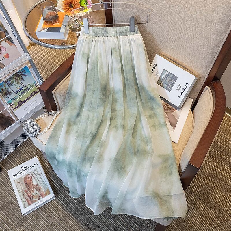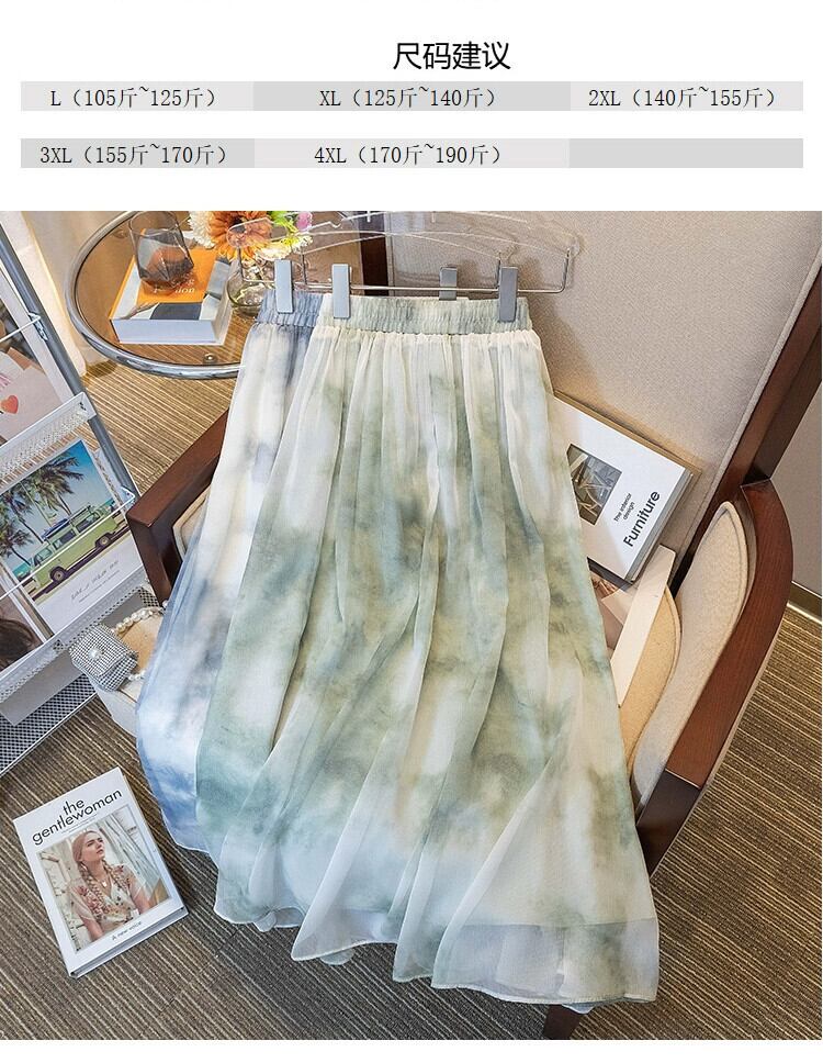 プラスサイズの婦人服 2023 脂肪姉妹夏の新ファッションロングスカートシフォン a ラインスカート女性中国風のプリントスカート 大きめサイズ サマー 夏物 Aライン 888414484657865