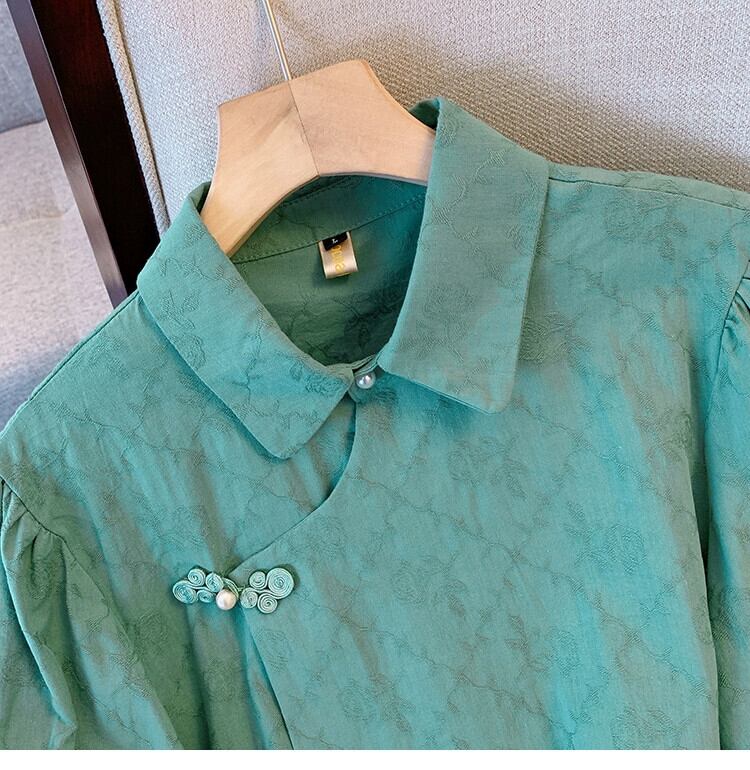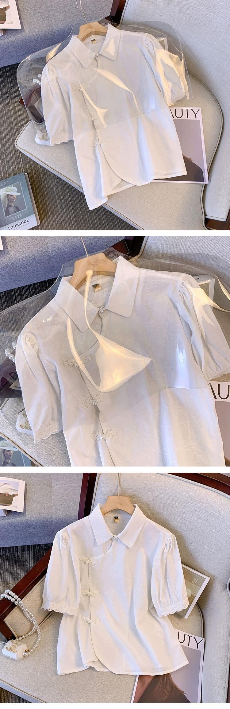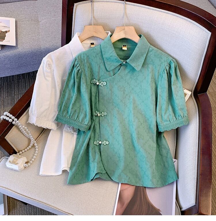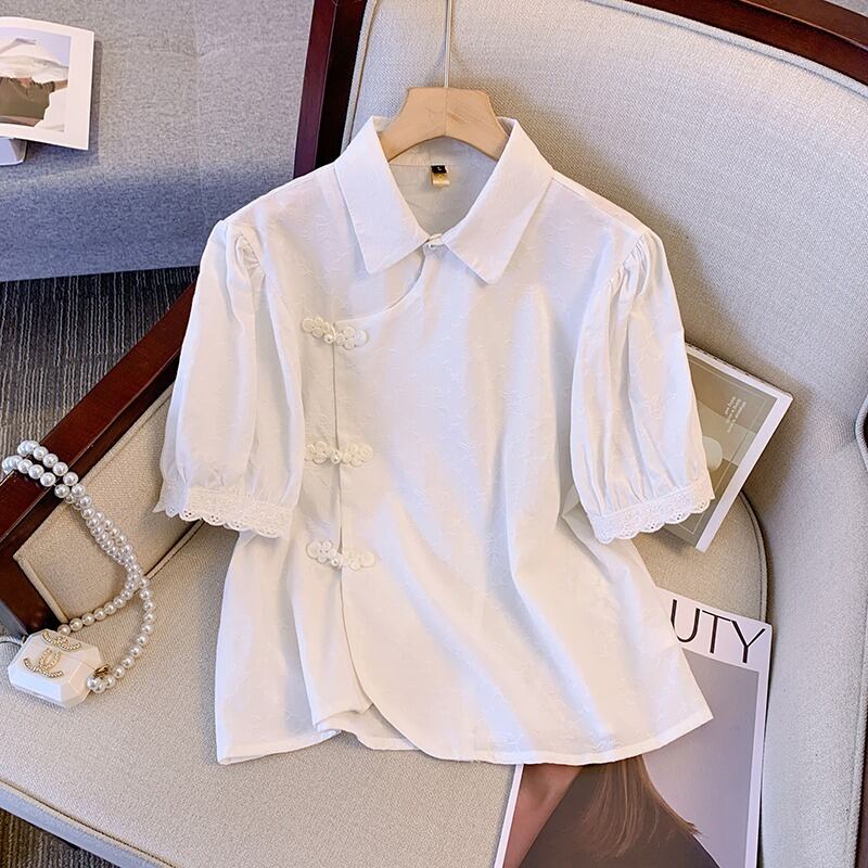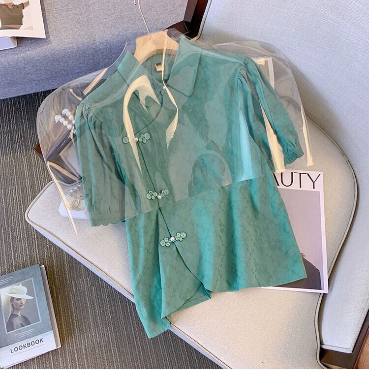 プラスサイズの婦人服 2023 トレンディな夏の新しい脂肪姉妹新しい中国風の小さなシャツシフォンシャツ半袖痩身オールマッチトップ ショート ハーフスリーブ 大きめサイズ サマー 夏物 8884187041287771