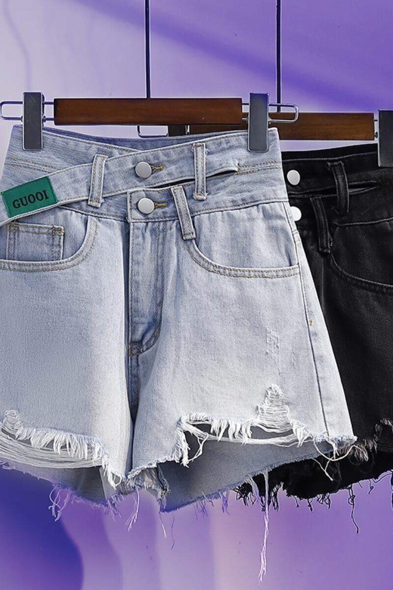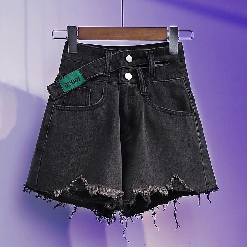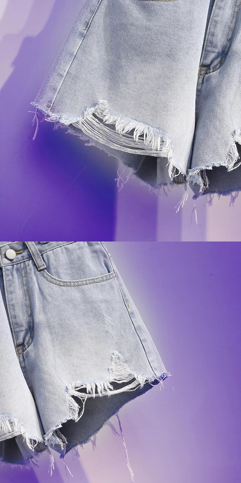 プラスサイズの婦人服 2023 ファットシスター夏の新しいファッションハイウエストジーンズ多用途ワイドレッグパンツ擦り切れショートパンツパンツ ハイウェスト 大きめサイズ サマー 夏物 ショーツ ブルマー ワイドパンツ 8884161047352574