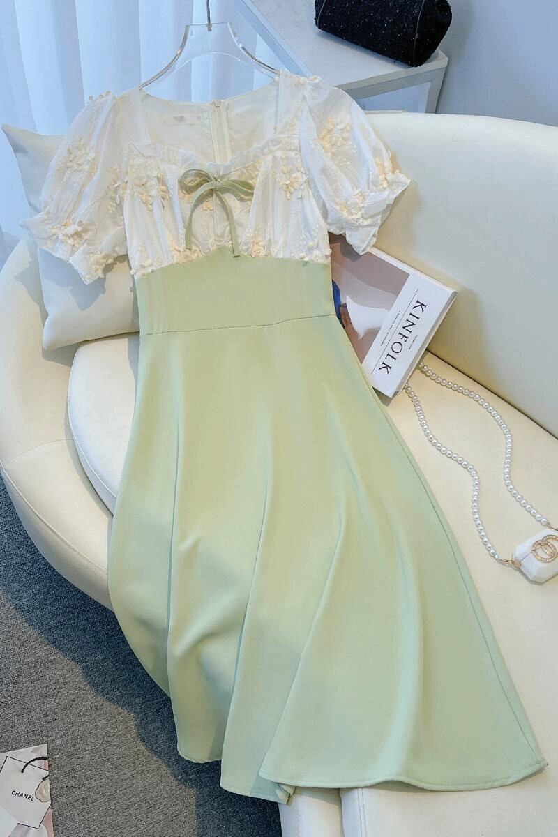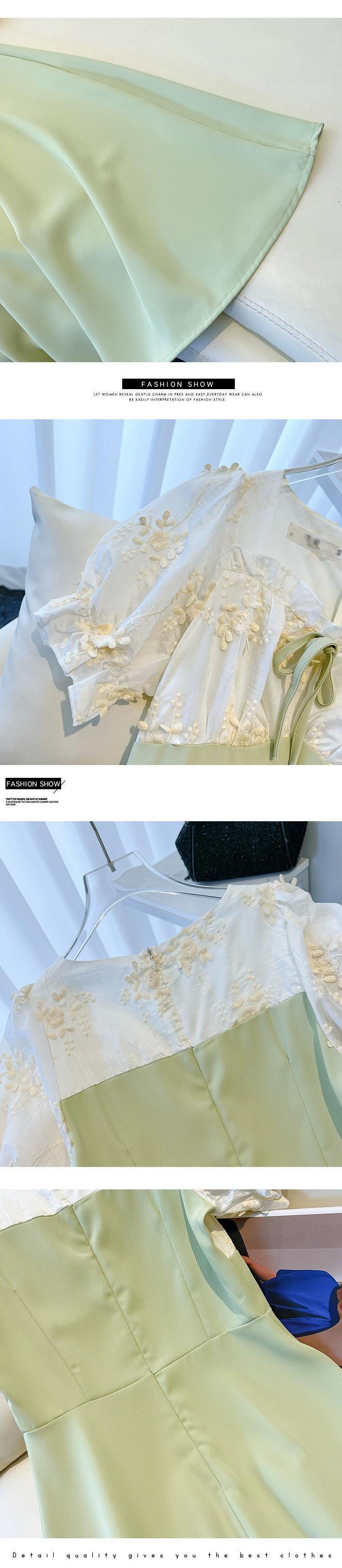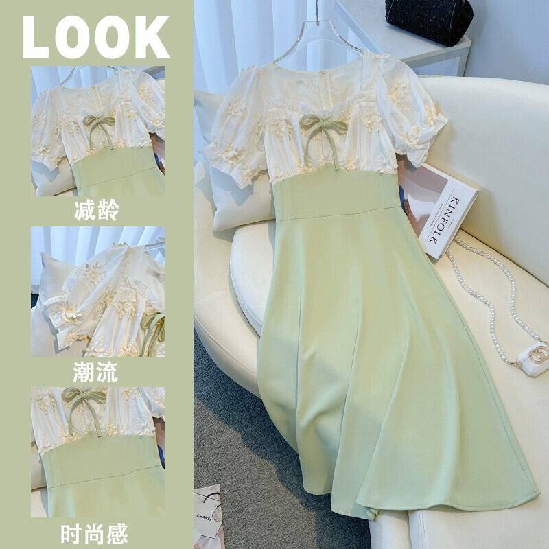プラスサイズの婦人服 2023 脂肪姉妹夏の新スタイルフレンチレトロイミテーションパールレーススプライシングロングスカート痩身ドレス 大きめサイズ サマー 夏物 真珠 8884121877177342