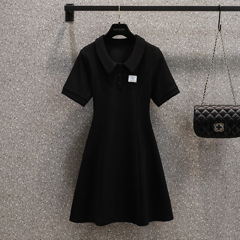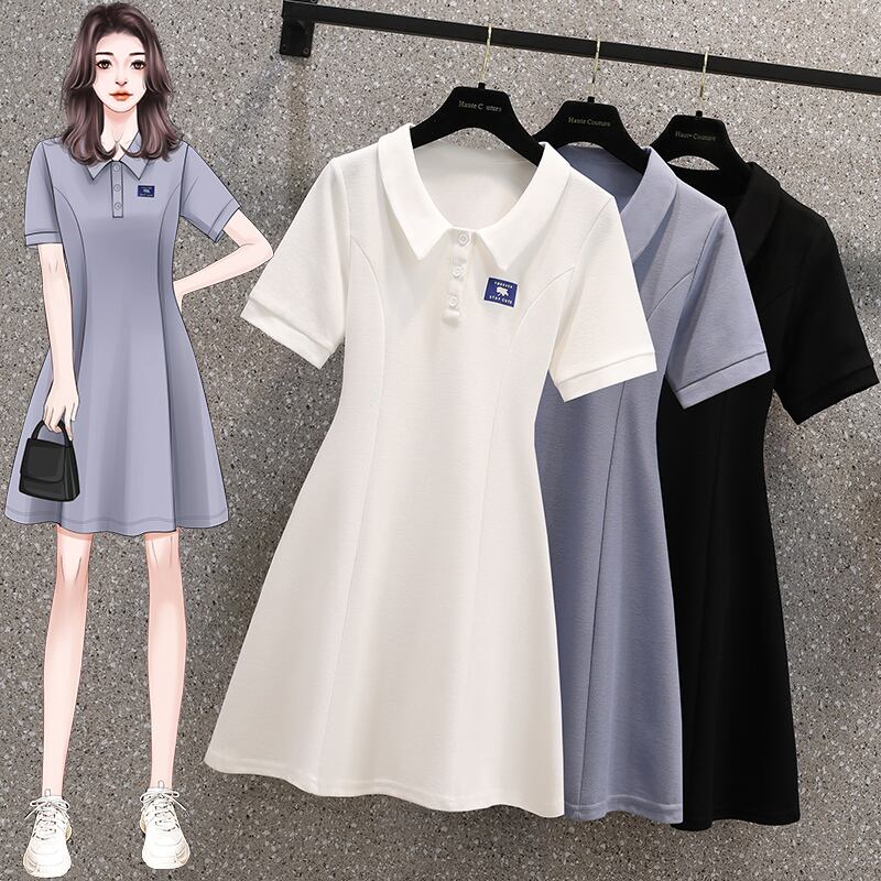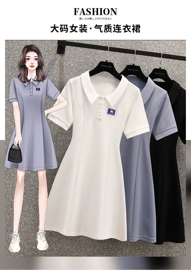 プラスサイズの婦人服 2023 脂肪姉妹夏の新ファッション年齢削減小男スリムスカートポロカラードレス 大きめサイズ サマー 夏物 8884117318677848