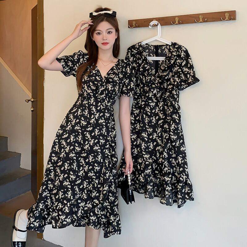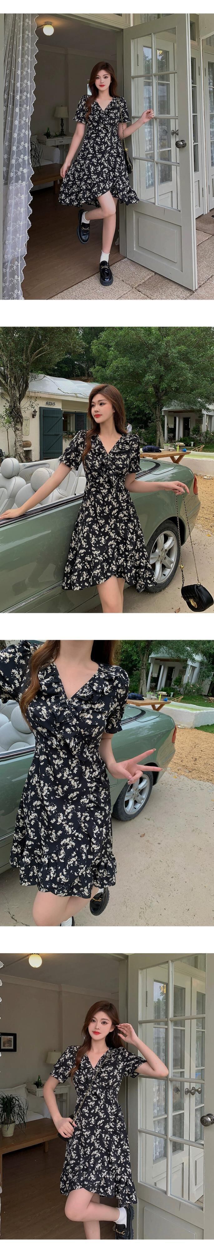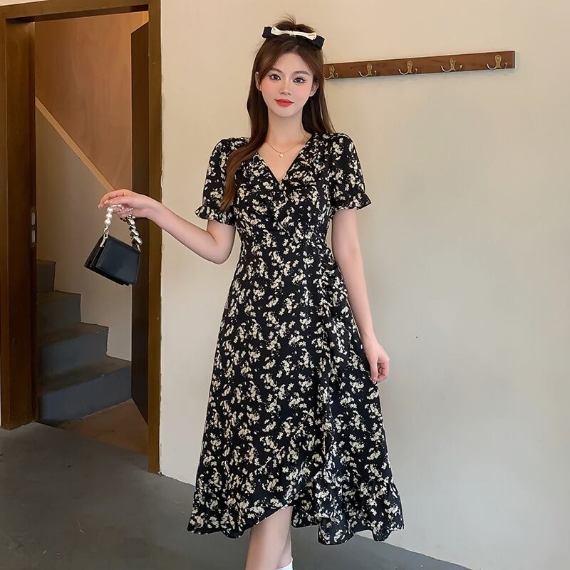 プラスサイズの婦人服 2023 トレンディな夏の新しいファットシスターエインスタイル年齢を軽減する花柄スカートフリルロングとショートドレス 大きめサイズ サマー 夏物 8884197295861858