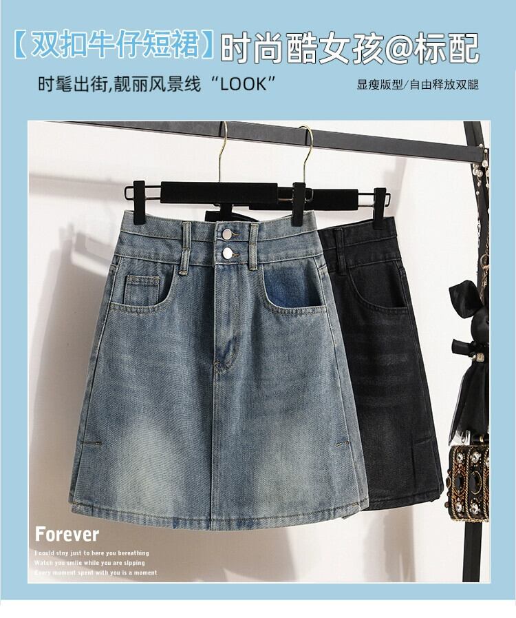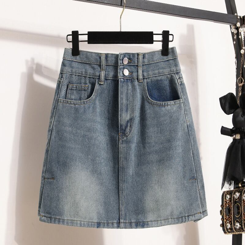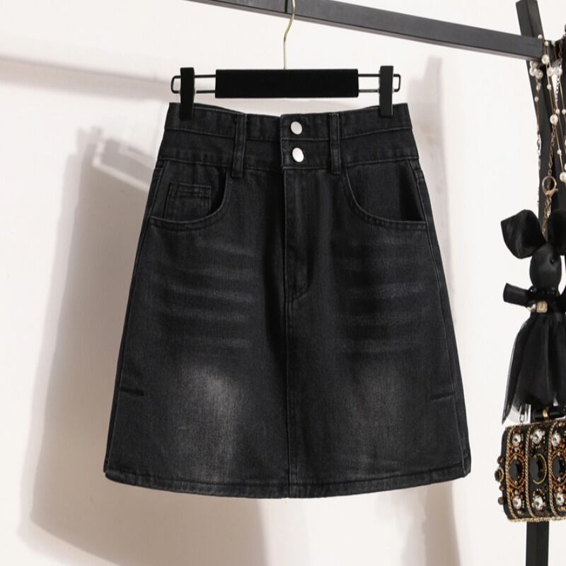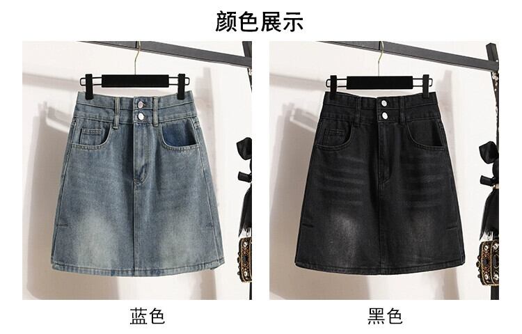 大きいサイズの女性の夏の脂肪姉妹新しいレトロハイウエスト A ラインバッグヒップデニムスカート痩身ベリースカート ハイウェスト 大きめサイズ サマー 夏物 Aライン 8884127314119328