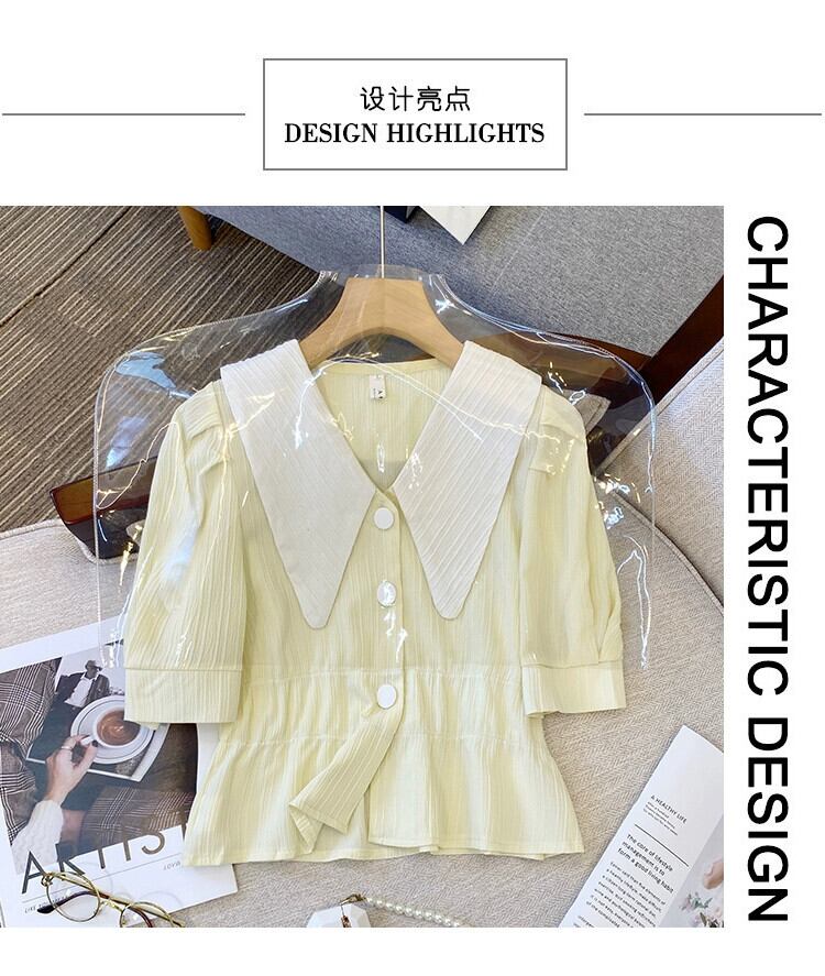 プラスサイズの婦人服 2023 トレンディな夏の新しいファットシスターフレンチスタイルのレトロなコントラストカラートップ大きなラペル気質ショートシャツ 大きめサイズ サマー 夏物 8884161447688849