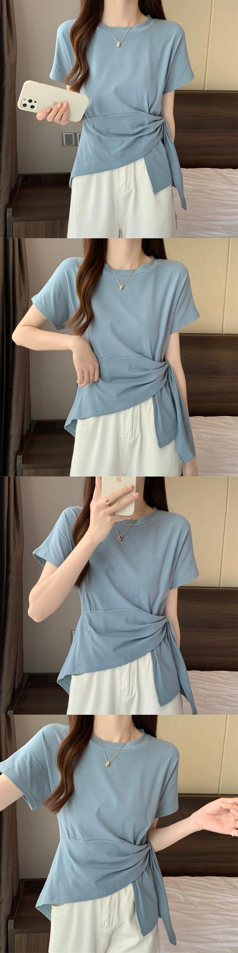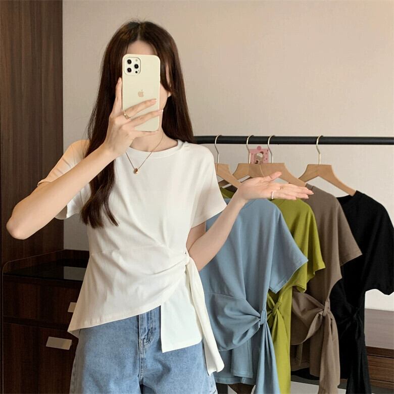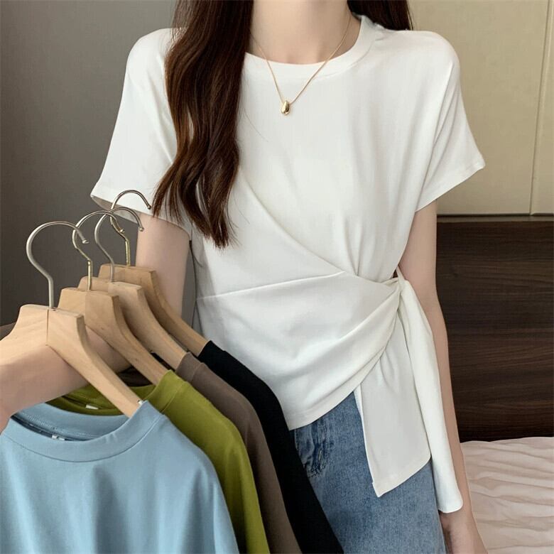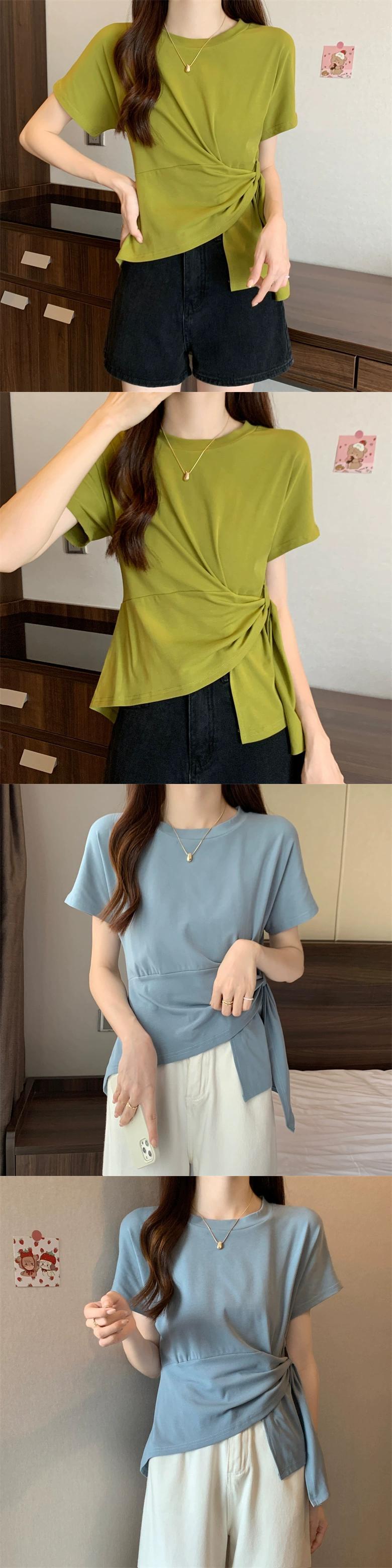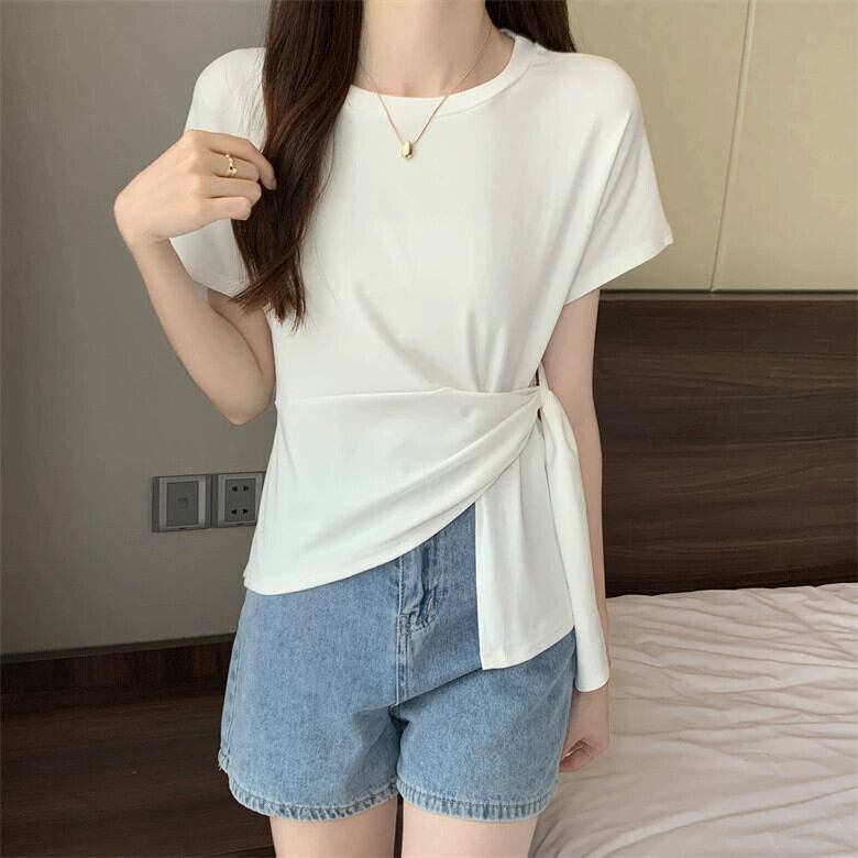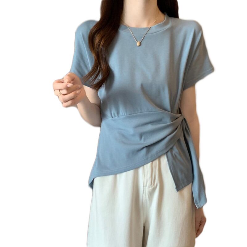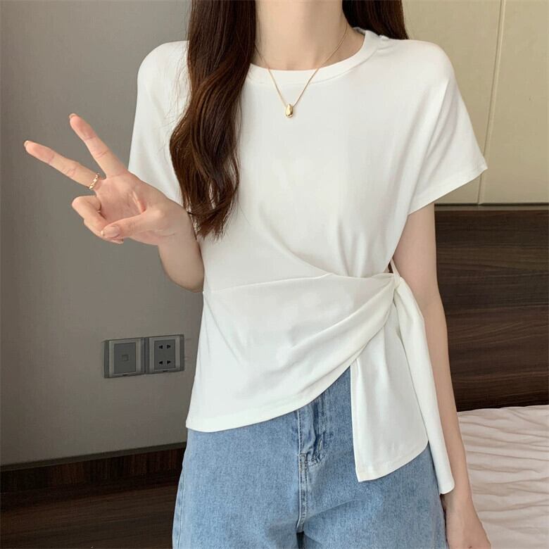 プラスサイズの婦人服 2023 夏服ファットシスターカジュアルオールマッチストラップ薄い T シャツ不規則な年齢を減らす気質トップ 大きめサイズ サマー 夏物 Tシャツ 8884194223501482