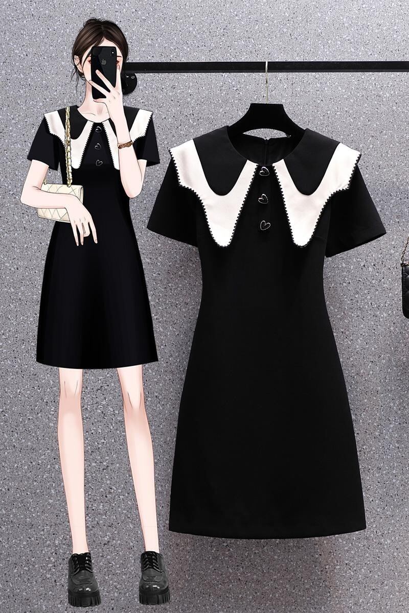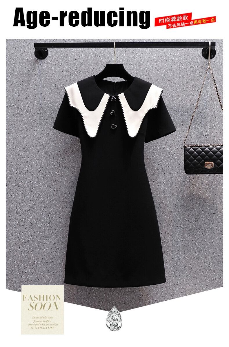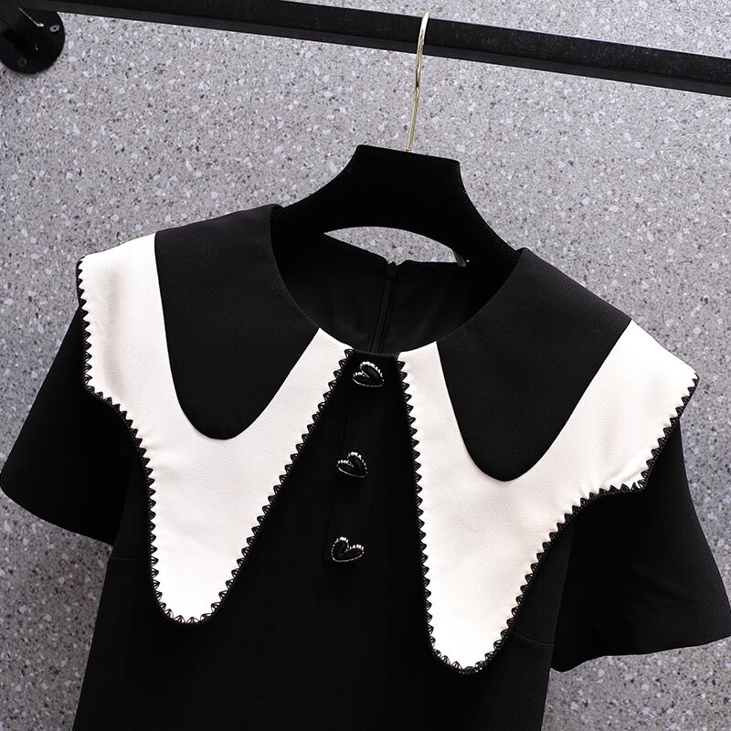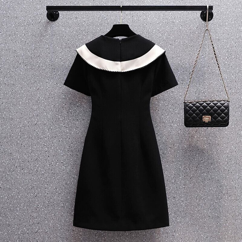 プラスサイズの婦人服 2023 夏服脂肪姉妹新しいフレンチスタイルのコントラストカラーの人形の襟スリム A ラインスカート半袖ドレス 大きめサイズ サマー 夏物 Aライン 8884158845249546