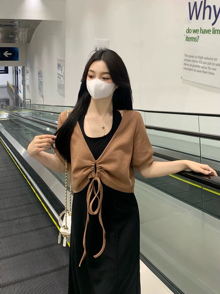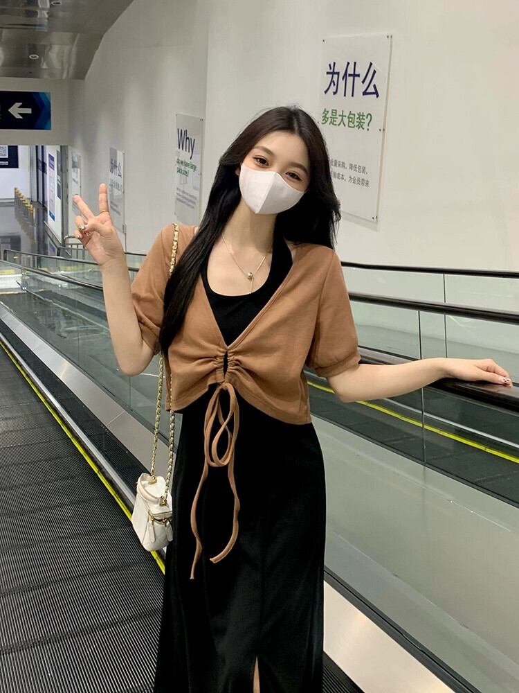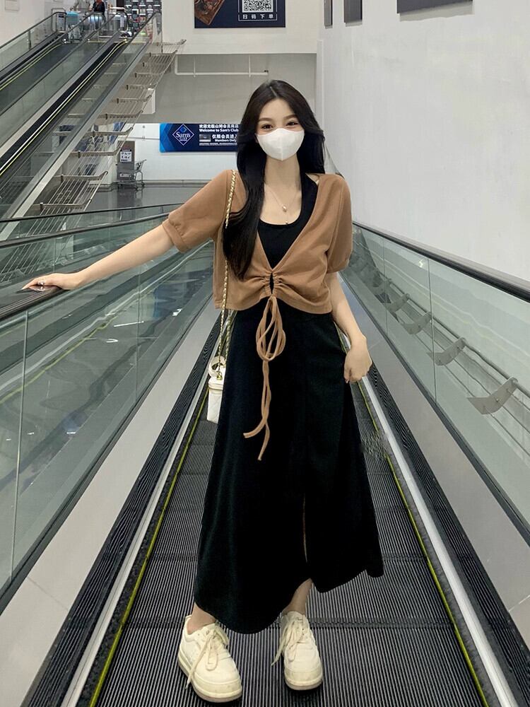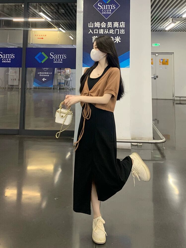 大きいサイズの婦人服 2023 脂肪姉妹夏の新ファッションスーツ巾着不規則なトップ吊りネックスカート 2 点セット 大きめサイズ サマー 夏物 8884198211717271