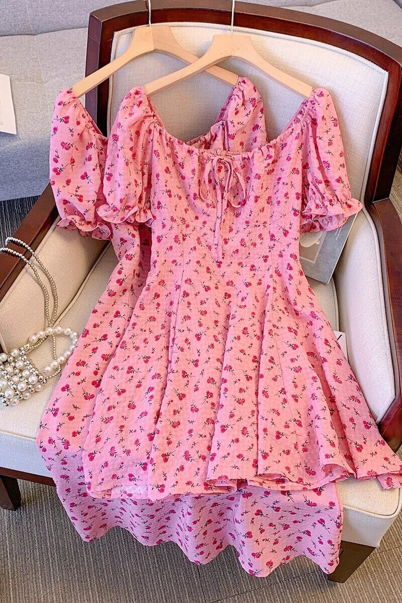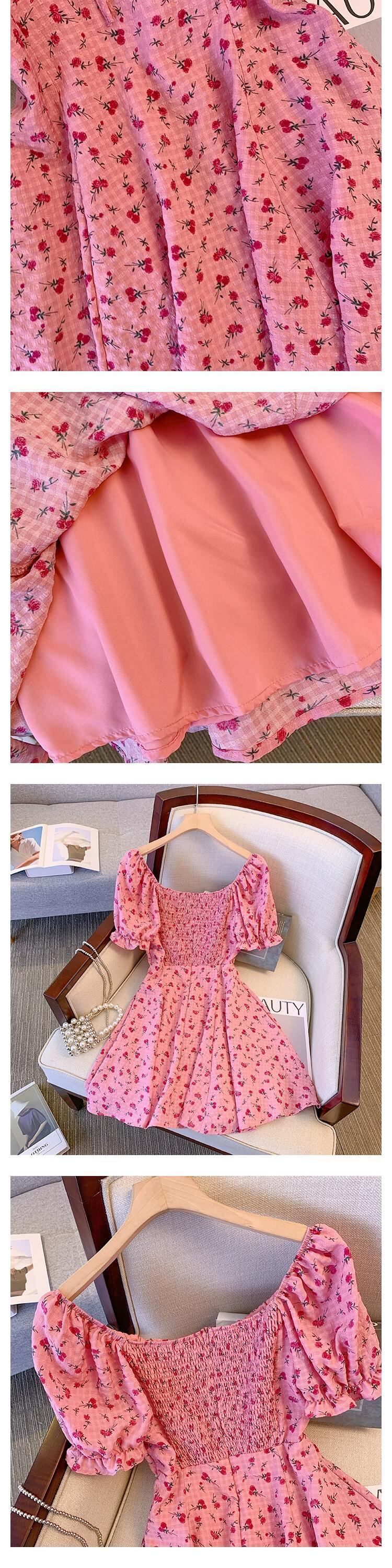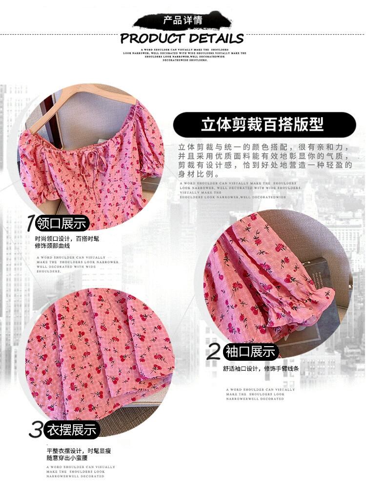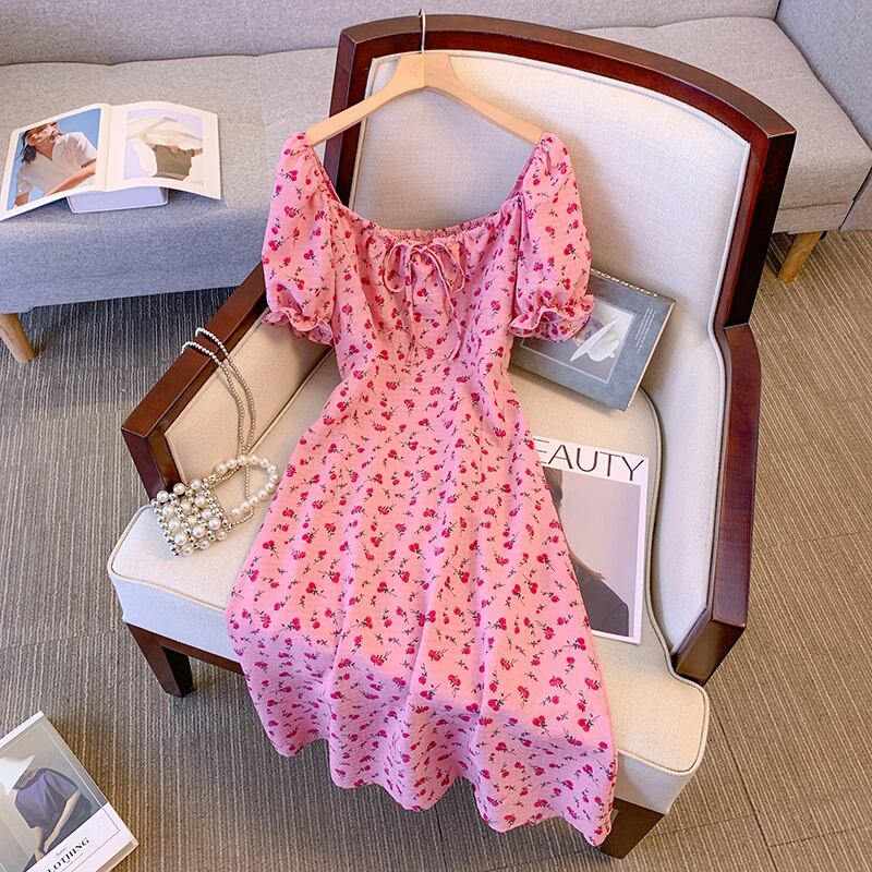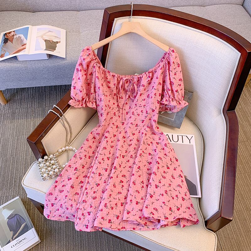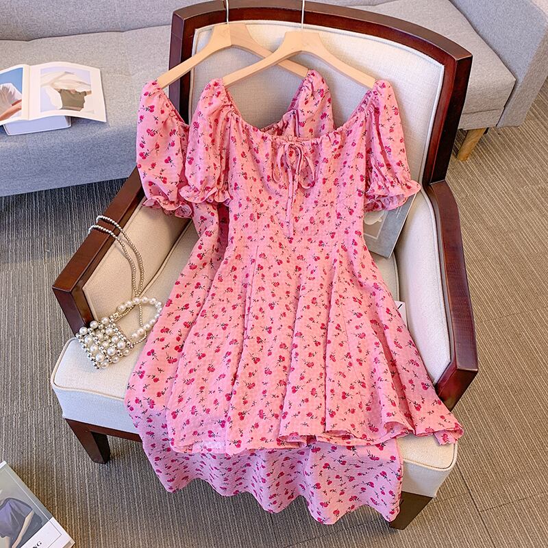 プラスサイズの婦人服 2023 脂肪姉妹夏の新しいフレンチスクエアカラーワンショルダー花柄スカートパフスリーブスリムドレス 大きめサイズ サマー 夏物 スクウェア 8884113135368764