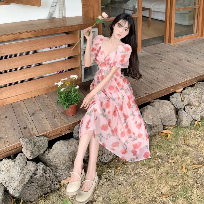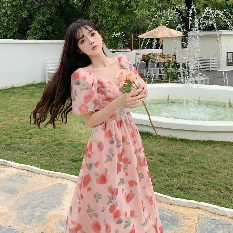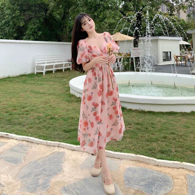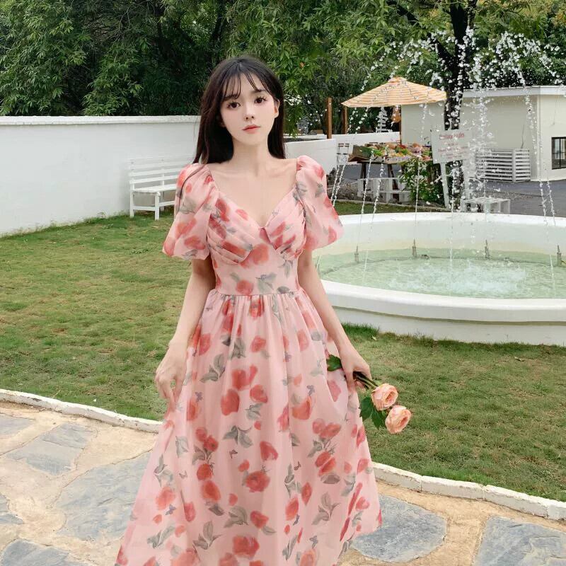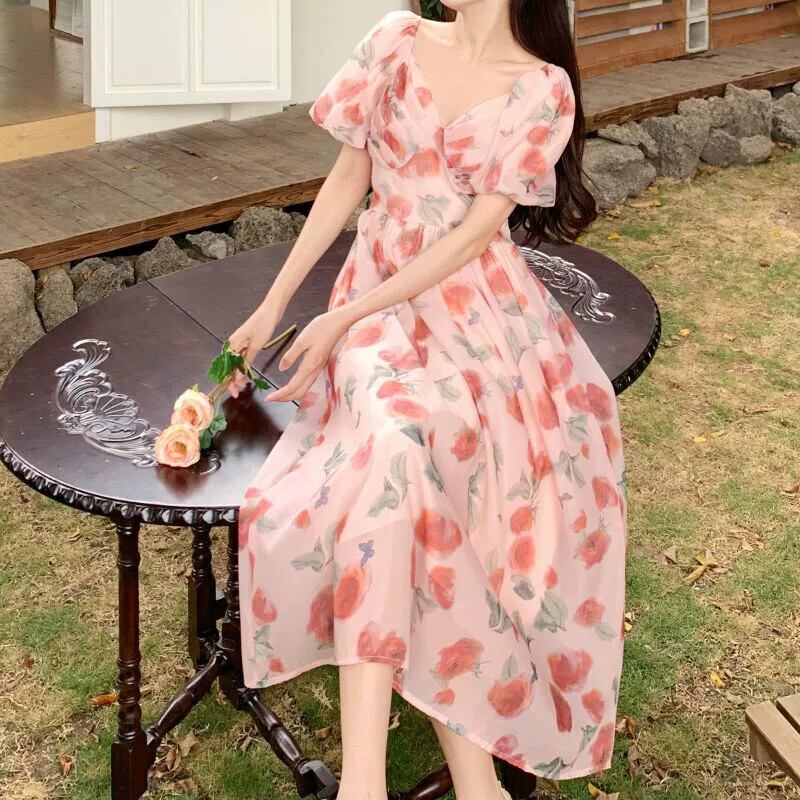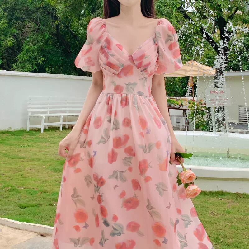 プラスサイズの婦人服 2023 脂肪姉妹夏の新しいフレンチスタイルのレトロなニッチ気質ドレスローズ V ネックドレス 大きめサイズ サマー 夏物 Vネック 8884122718540858