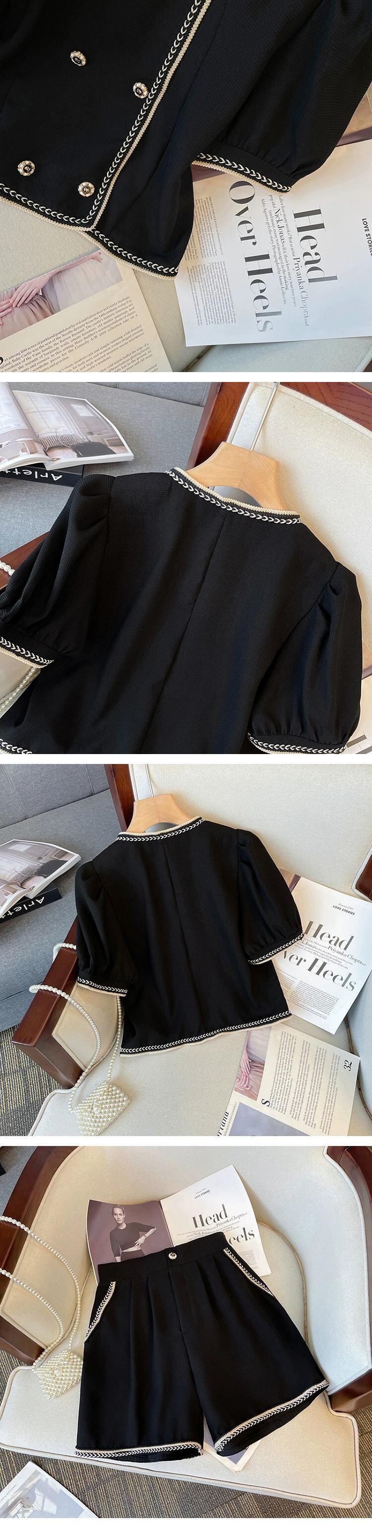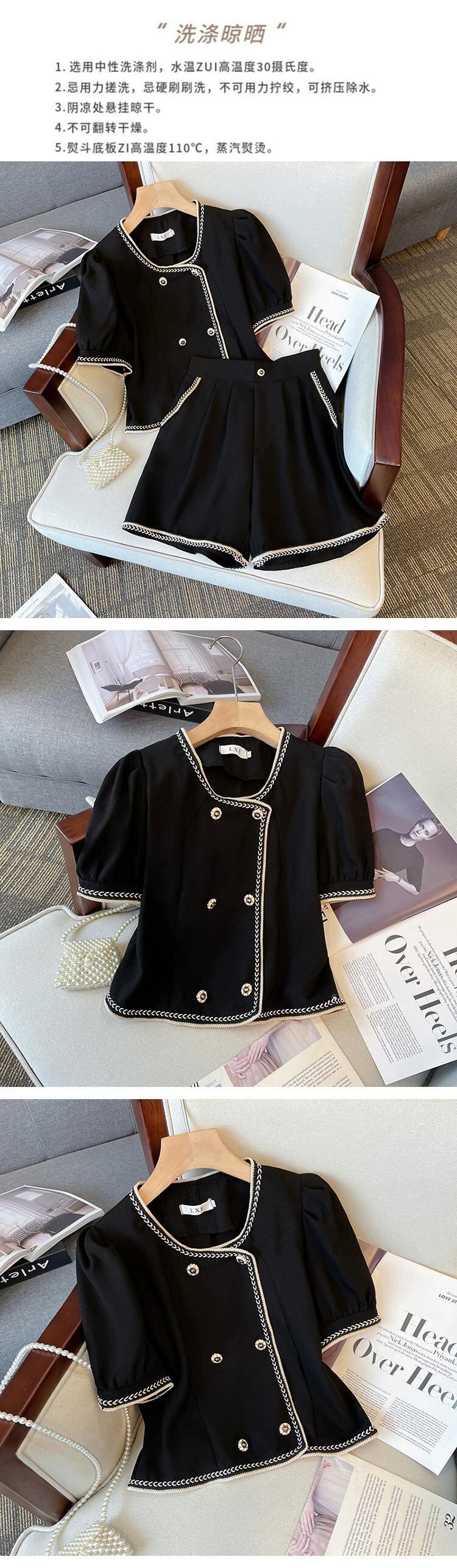プラスサイズの婦人服 2023 夏服ファットシスターズ新しいカジュアルスーツ年齢軽減ショーツ対照的なカラートップ痩身ツーピーススーツ 大きめサイズ サマー 夏物 ブルマー 8884192771008732