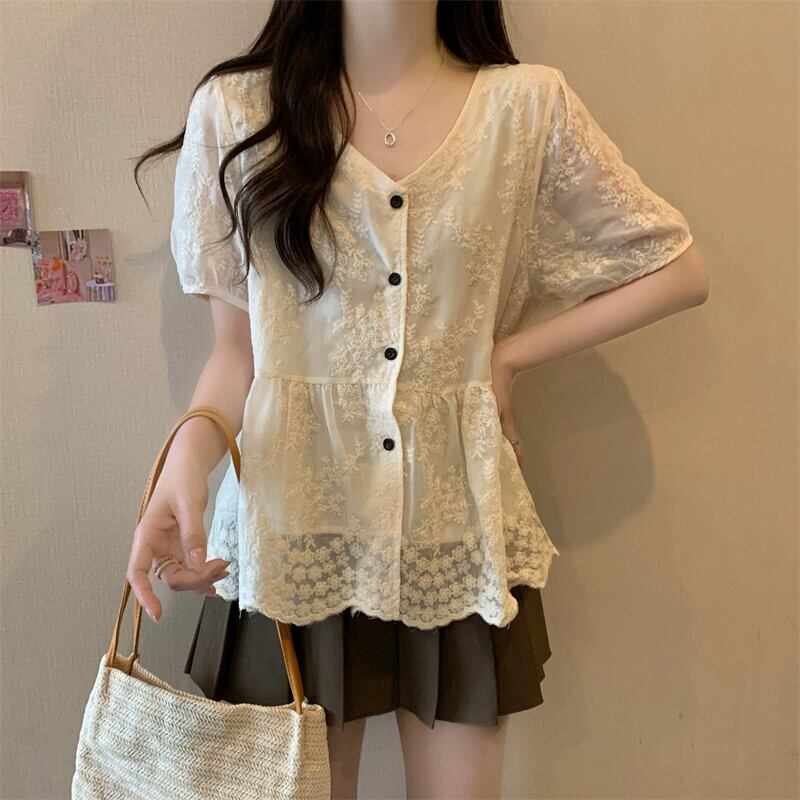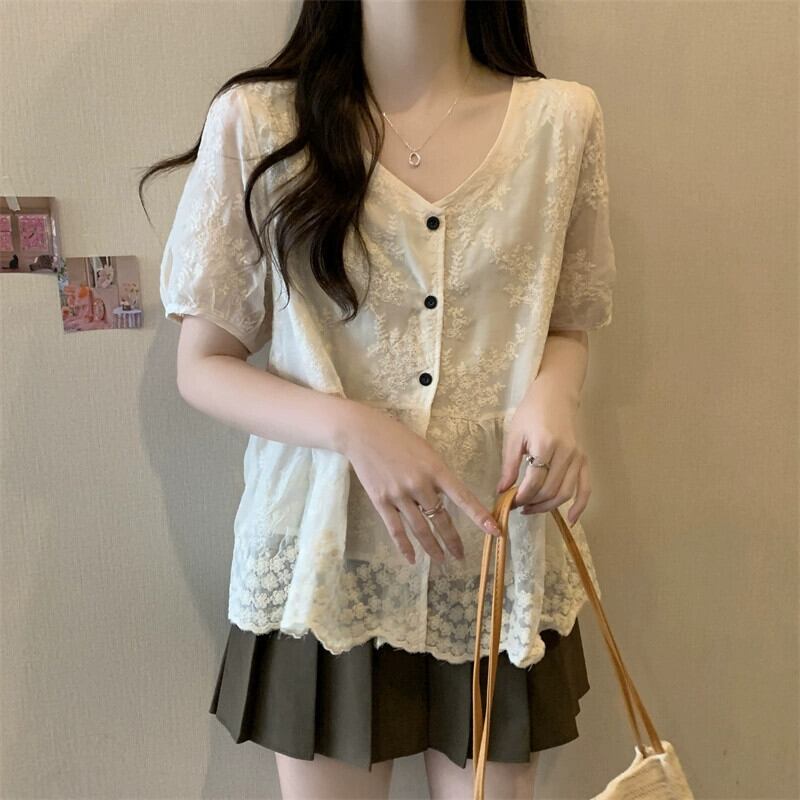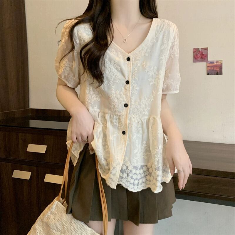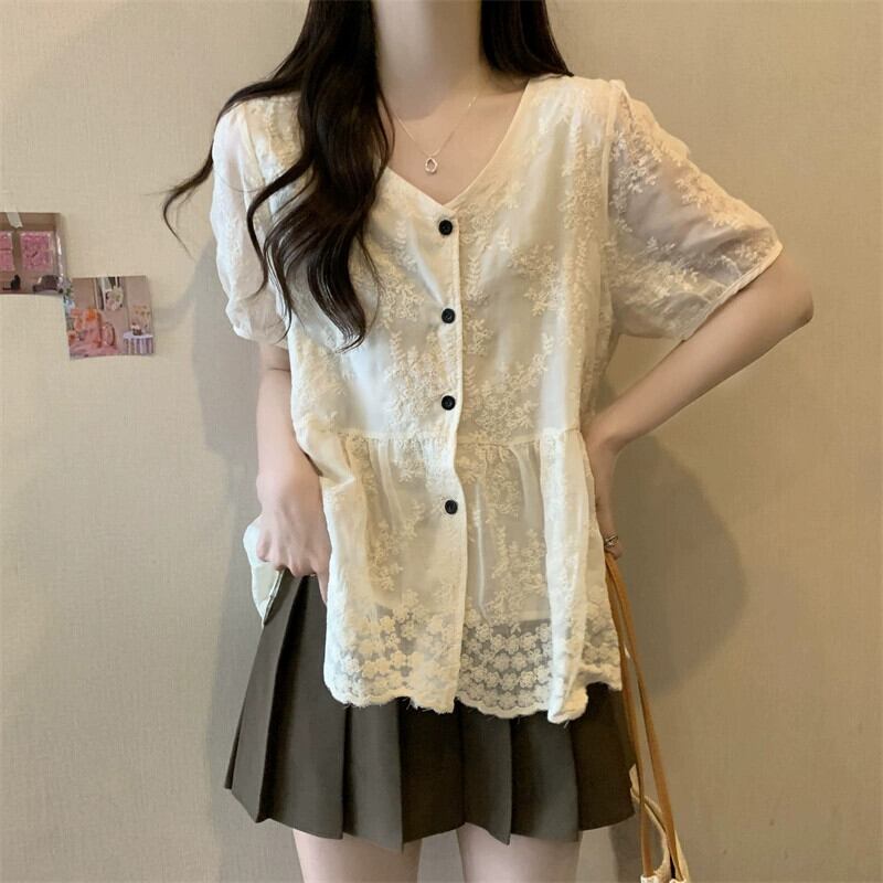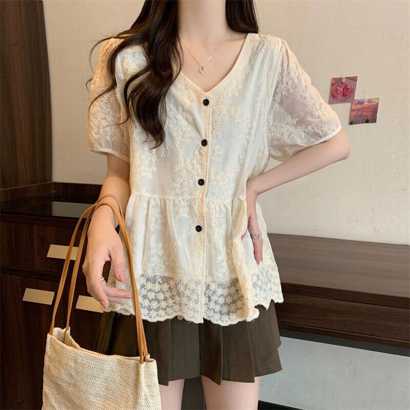 プラスサイズの婦人服 2023 トレンディな夏の新しいファットシスタースリミングと年齢を減らすトップスオールマッチ高品質ジャカードスリミングシャツ 大きめサイズ サマー 夏物 8884111523088143