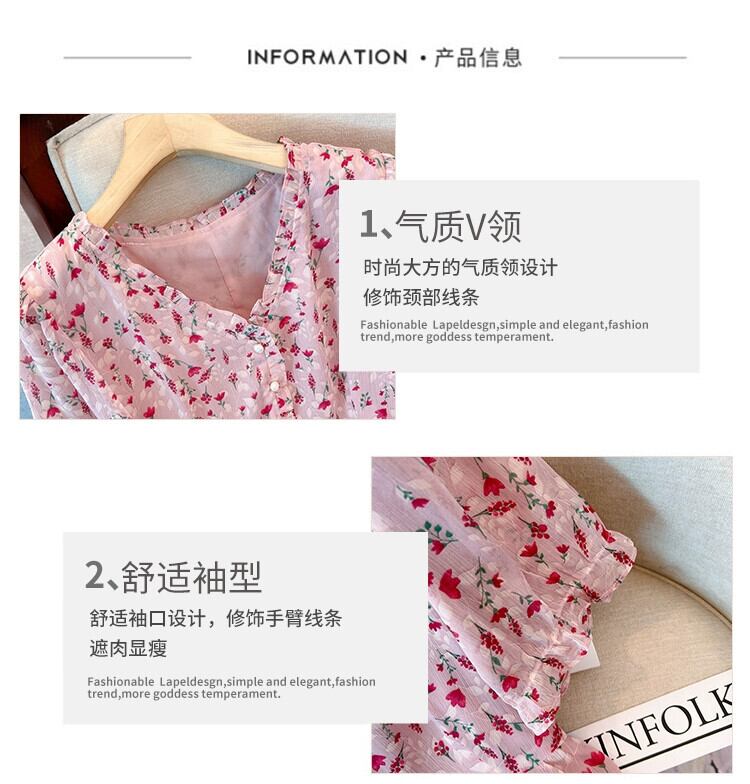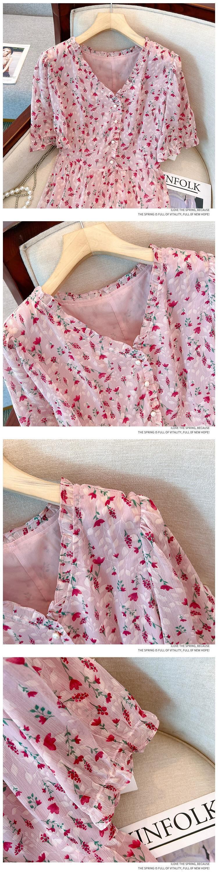 プラスサイズの婦人服 2023 脂肪姉妹夏のファッション年齢を減らす気質スリムカバー腹 V ネックロングスカート花柄ドレス 大きめサイズ サマー 夏物 Vネック 8884173813159392