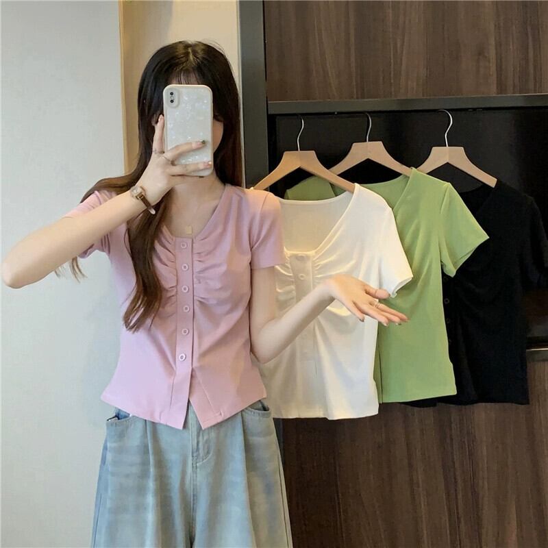 プラスサイズの婦人服 2023 夏服ファットシスターシックなひだファッション Tシャツデザインセンスルーズフレンチカジュアルトップス 大きめサイズ サマー 夏物 8884185640743909