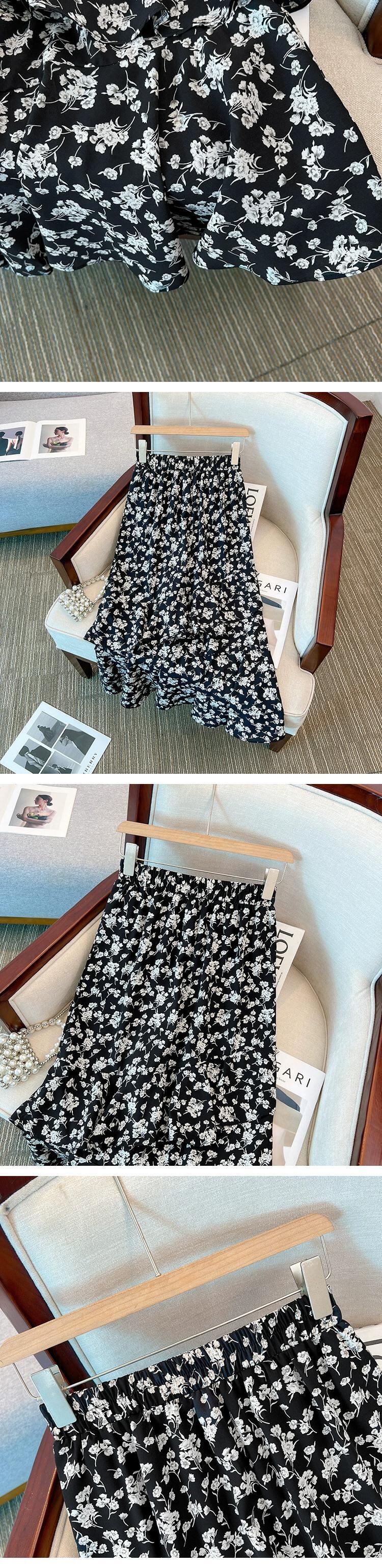 大きいサイズの婦人服 2023 脂肪姉妹夏の新ファッションスーツ花柄ケーキスカート重工業ビーズ Tシャツ 2 点セット 大きめサイズ サマー 夏物 8884198395509079