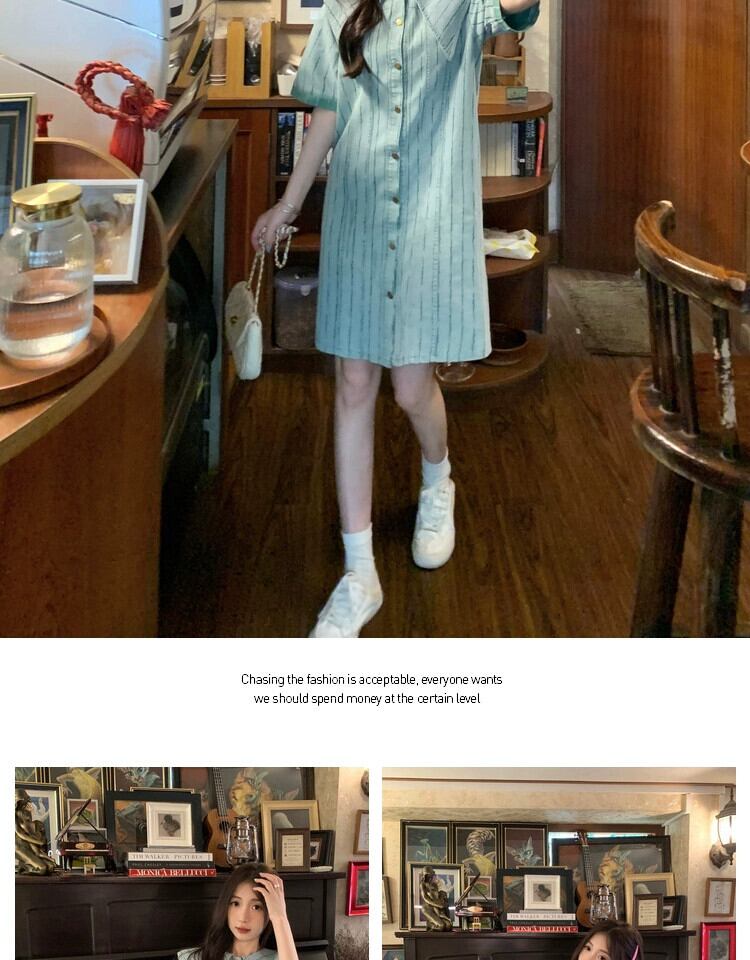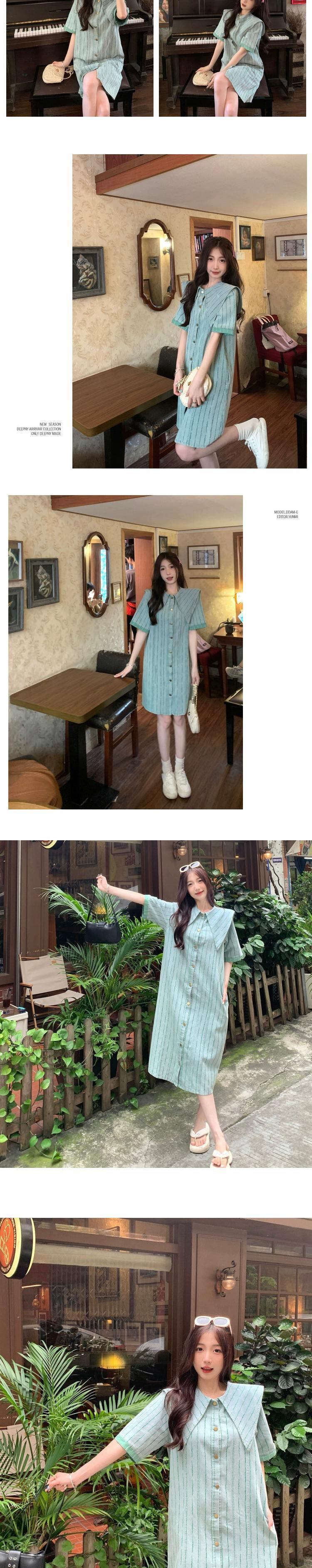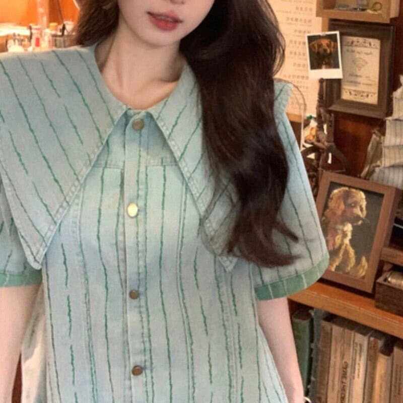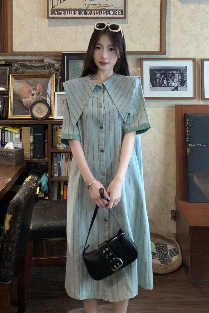 プラスサイズの婦人服 2023 夏服脂肪姉妹気質デザイン人形襟 A ラインスカートシックな腹カバードレス 大きめサイズ サマー 夏物 Aライン 8884165016467269