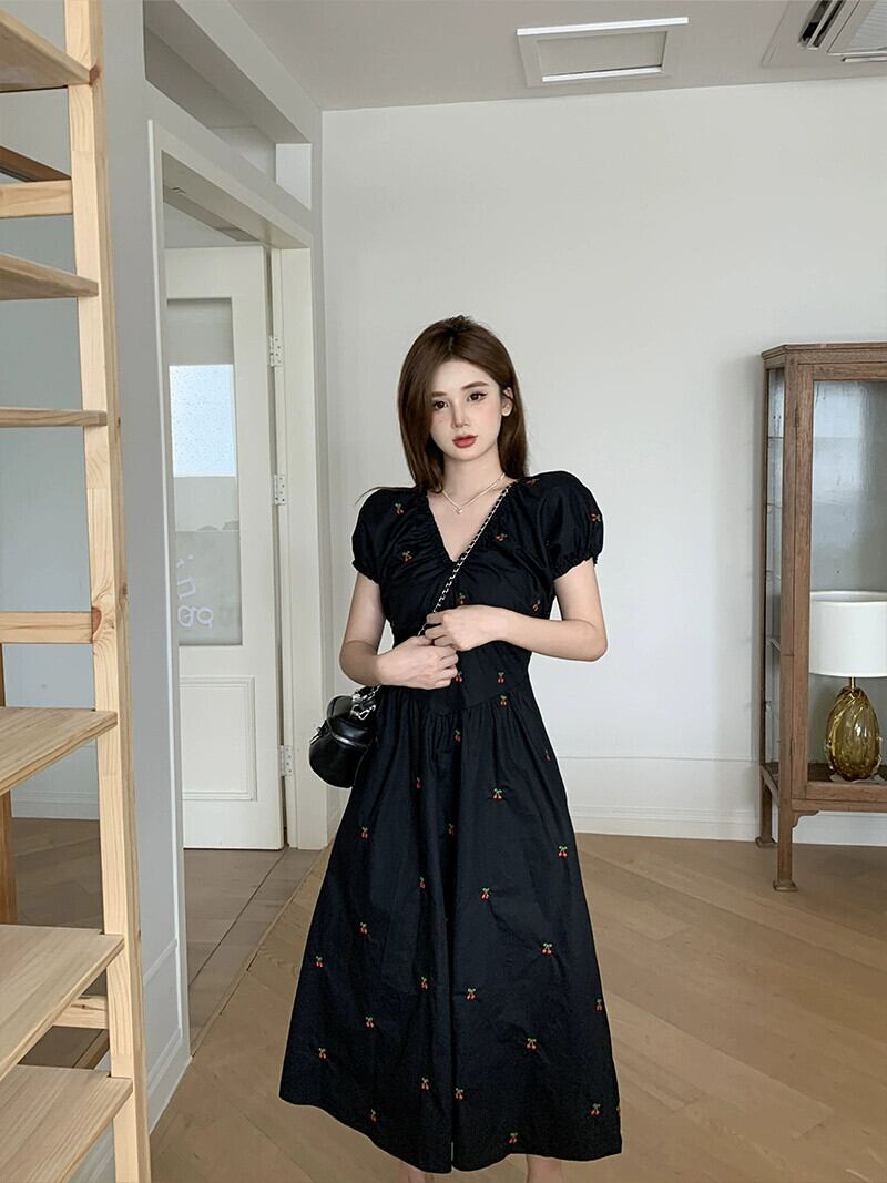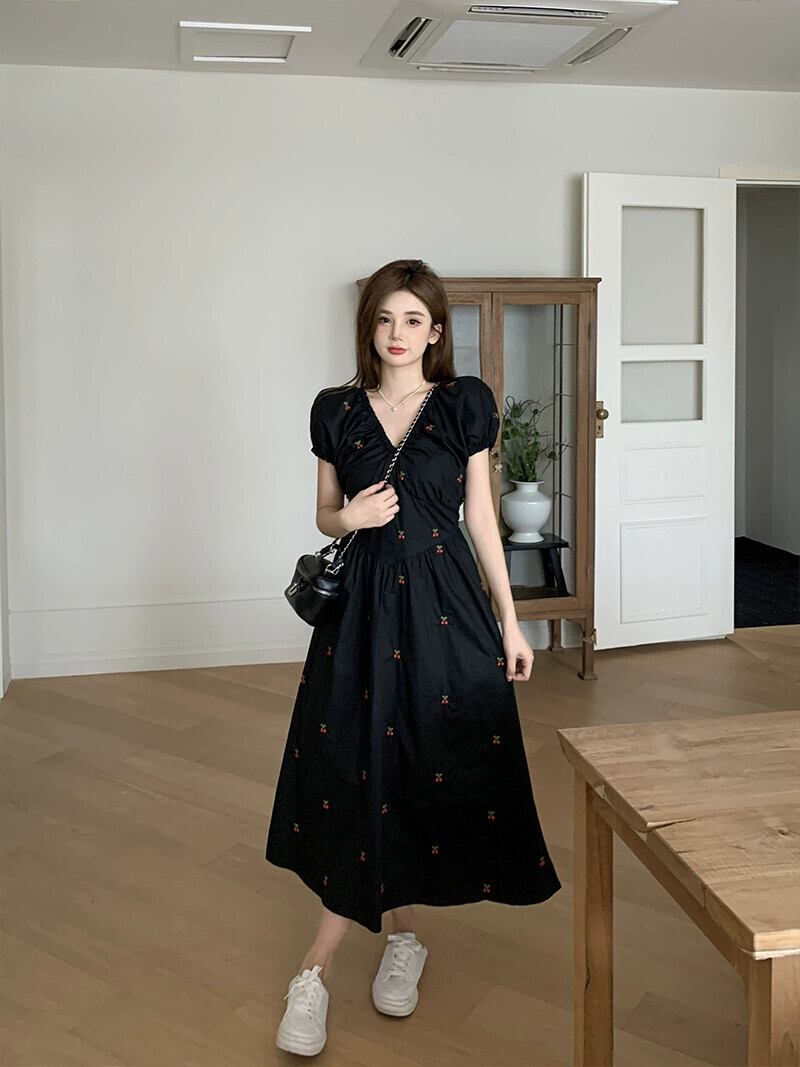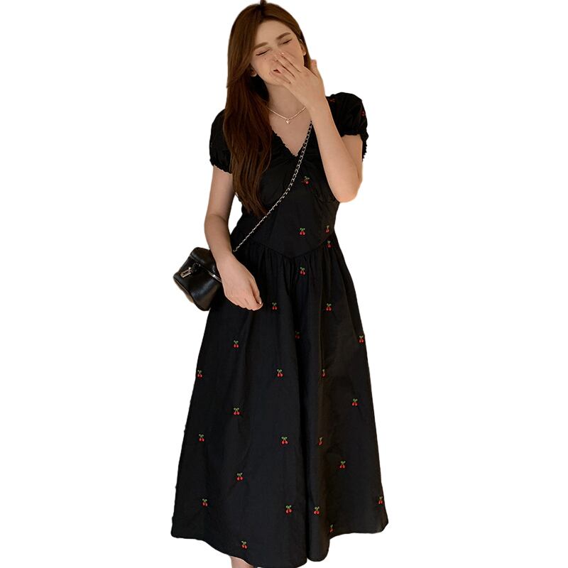 プラスサイズの婦人服 2023 トレンディな夏の新しいスタイルのファットシスターファッショナブルな V ネックのティーブレイクスカート痩身とお腹カバー気質 A ラインドレス 大きめサイズ サマー 夏物 Vネック Aライン 8884188498747038