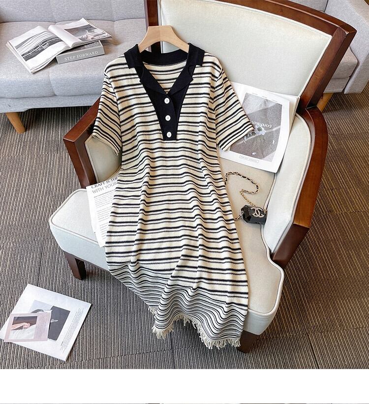 プラスサイズの婦人服 2023 夏服太った妹は薄い気質フレンチ A ラインスカートデザインセンスストライプカジュアルドレス 大きめサイズ サマー 夏物 Aライン 8884177780812160