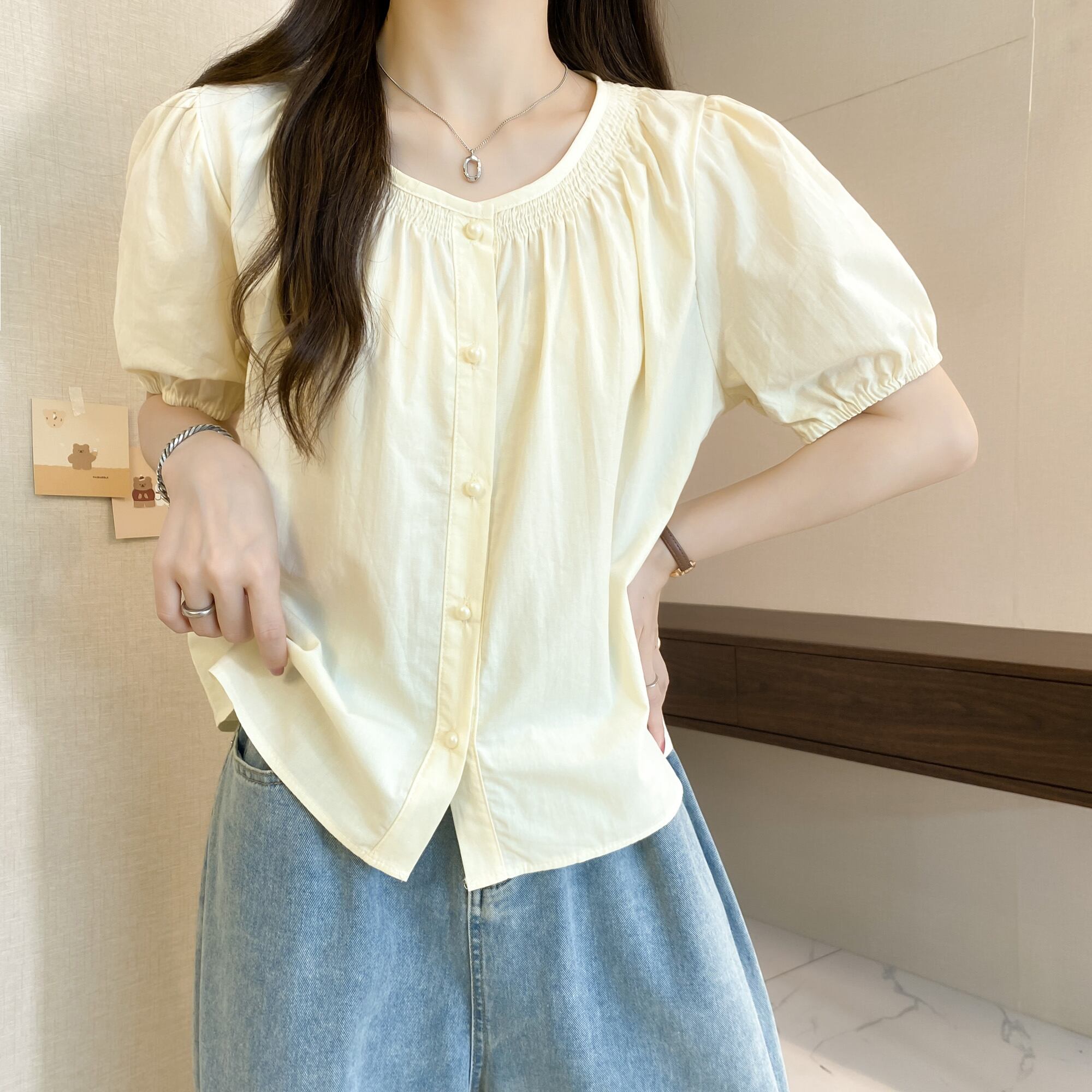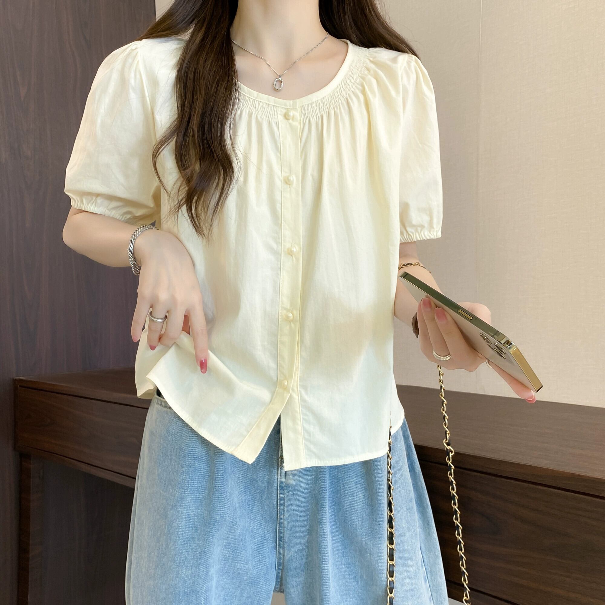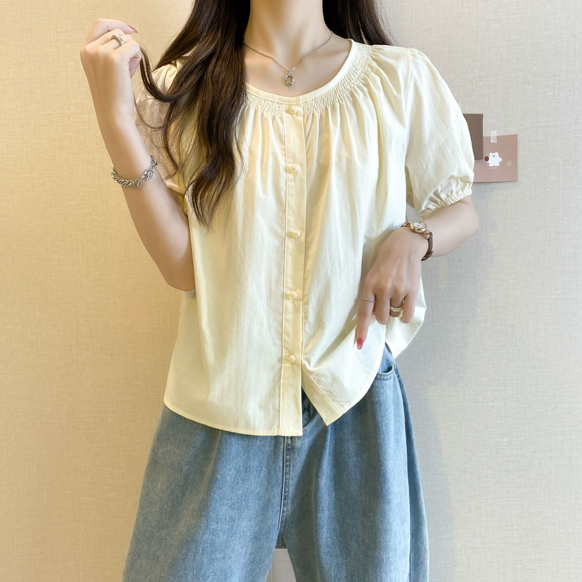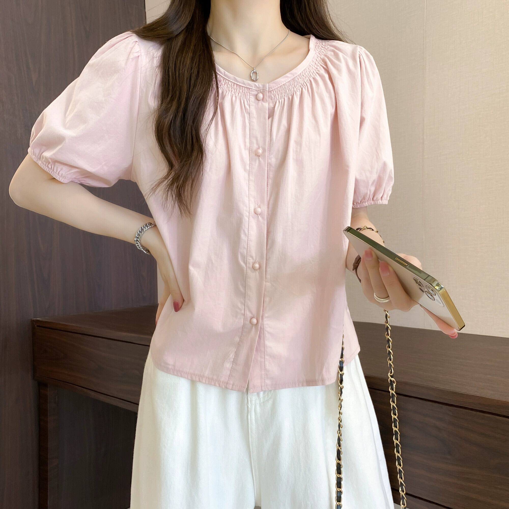 プラスサイズの婦人服 2023 脂肪姉妹夏の新しいファッション痩身と年齢削減オールマッチニッチ甘い半袖シャツトップ 大きめサイズ 大人ガーリー スウィート キュート カジュアル サマー 夏物 8884176529768852